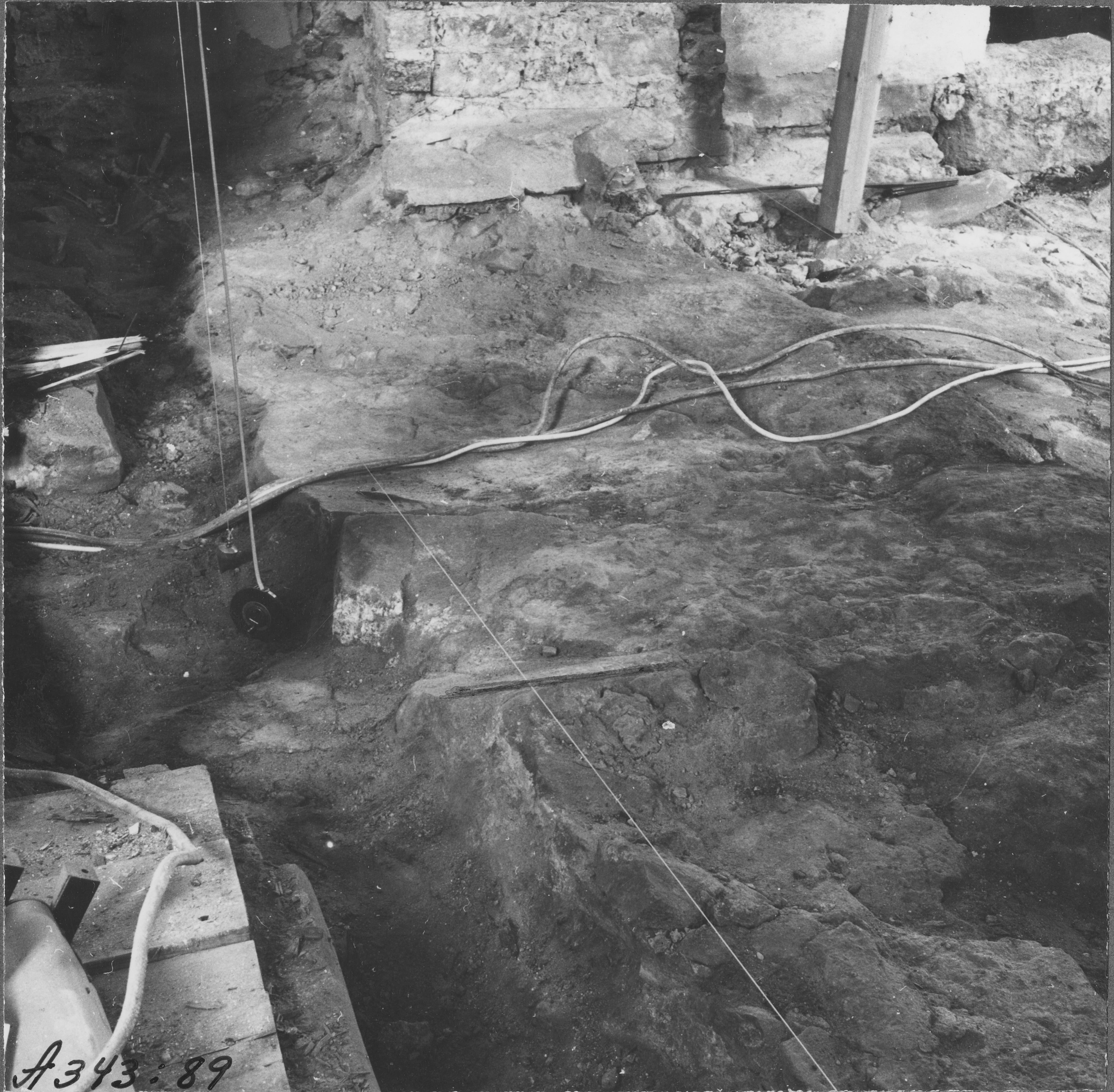 Beskrivning: Triumfbågens grundsula mot söder. Strecket markerar bågens södra sida.