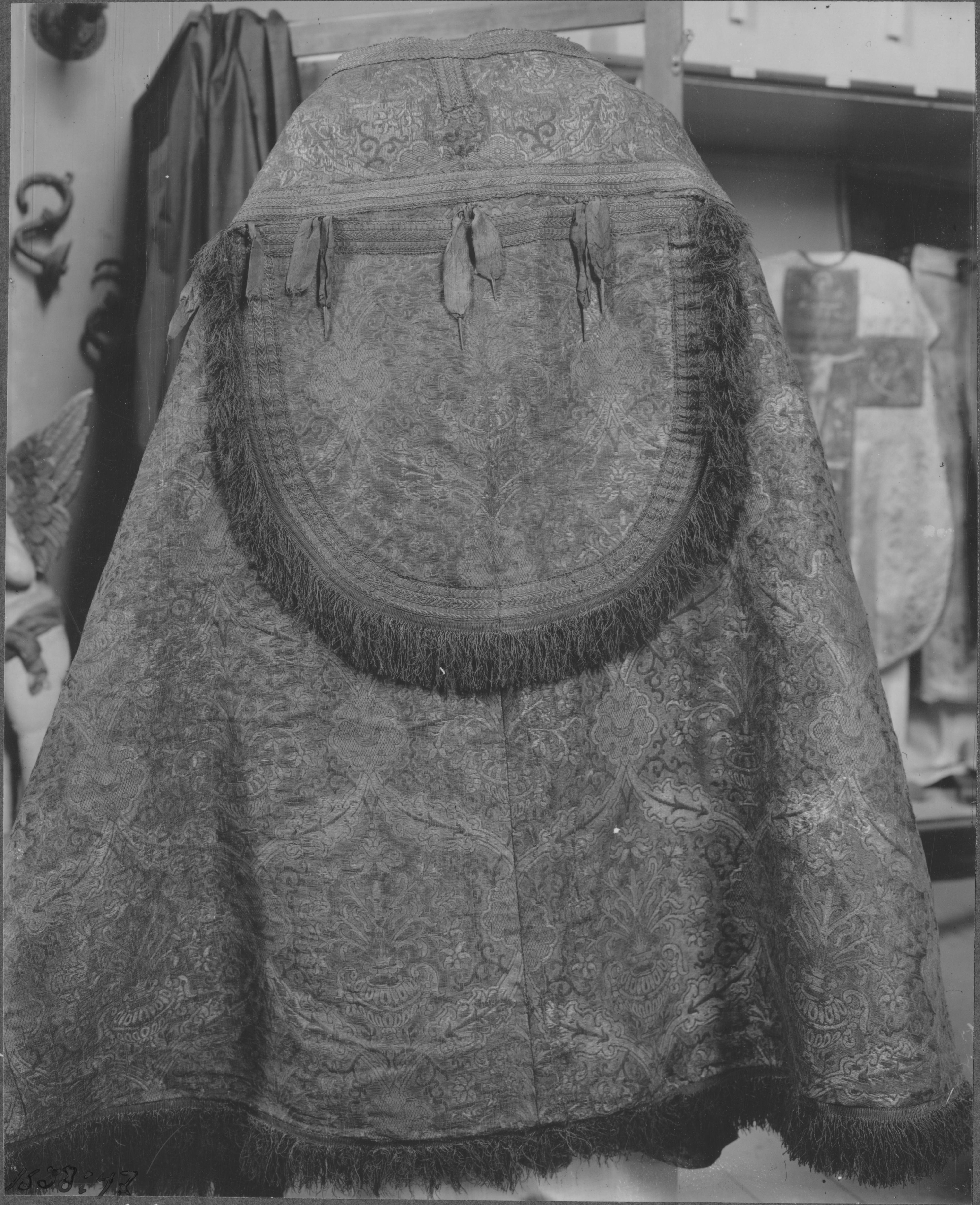 Beskrivning: Korkåpa. Röd guldbrokad. Gåva 1668 av biskop Samuel Enander. Snabbinventering.
