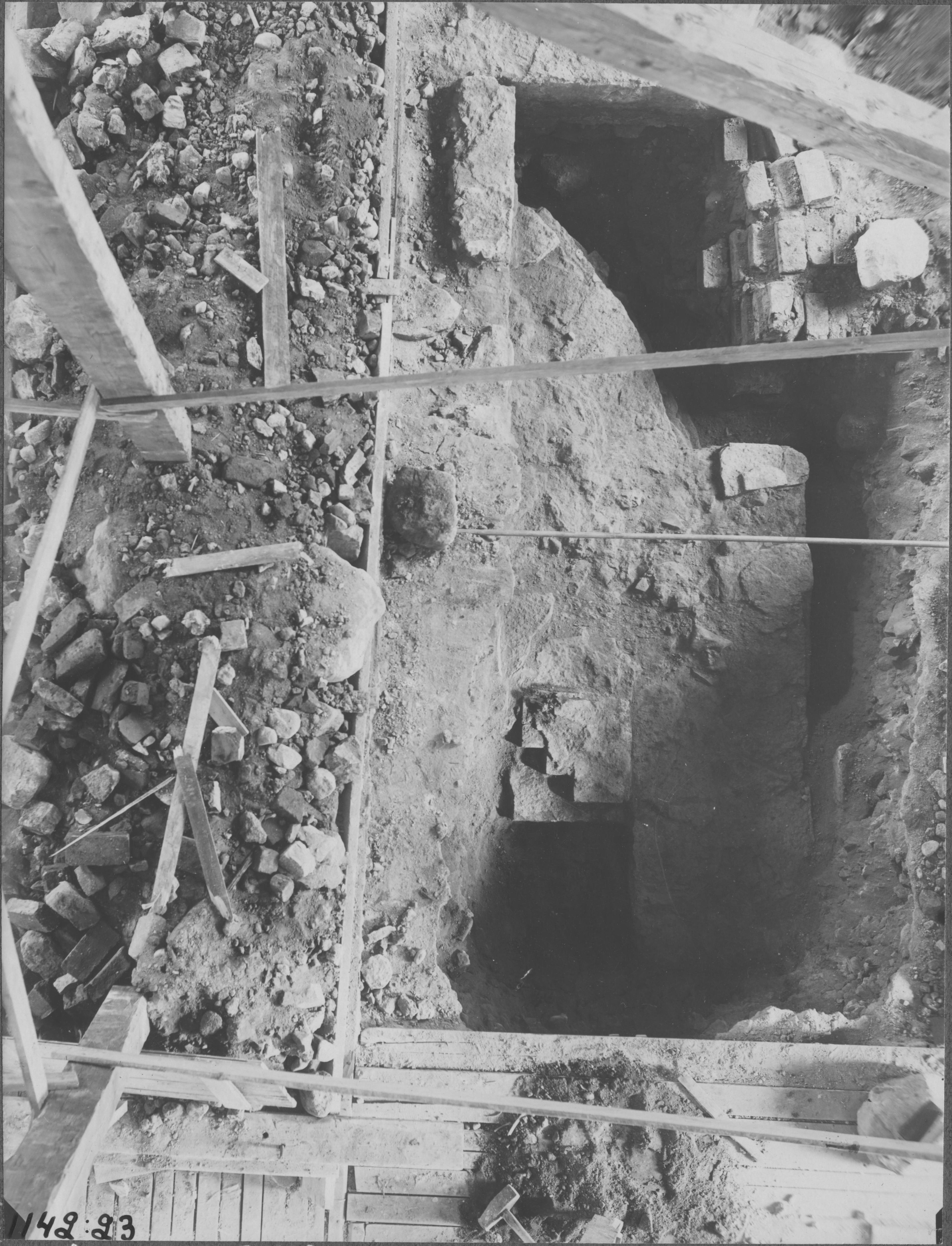Beskrivning: 1100-talskyrkan kor, sydöstra hörnet.
