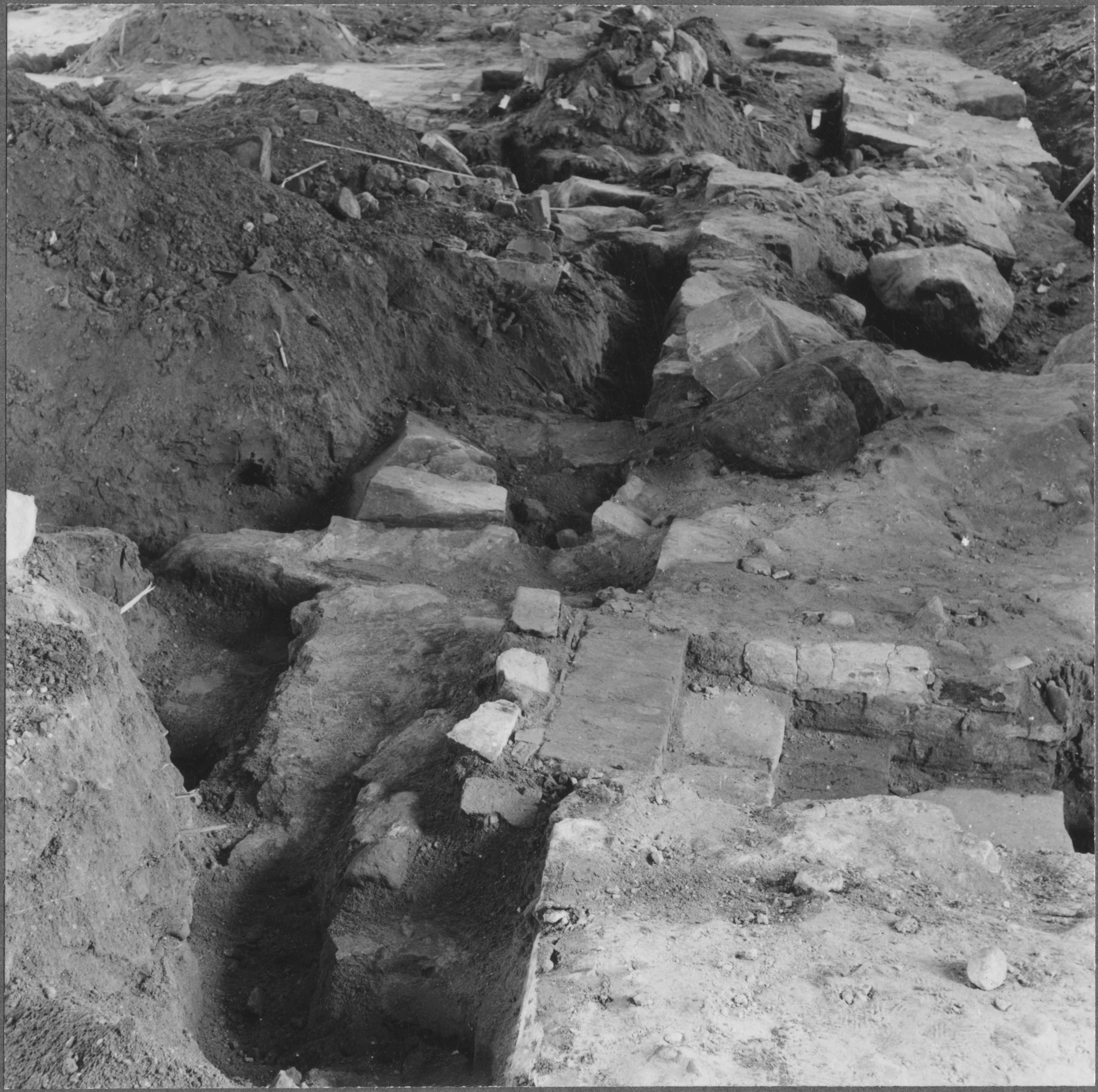 Beskrivning: Korets ursprungliga östra mur med anslutning till norra muren och pilastergrund.