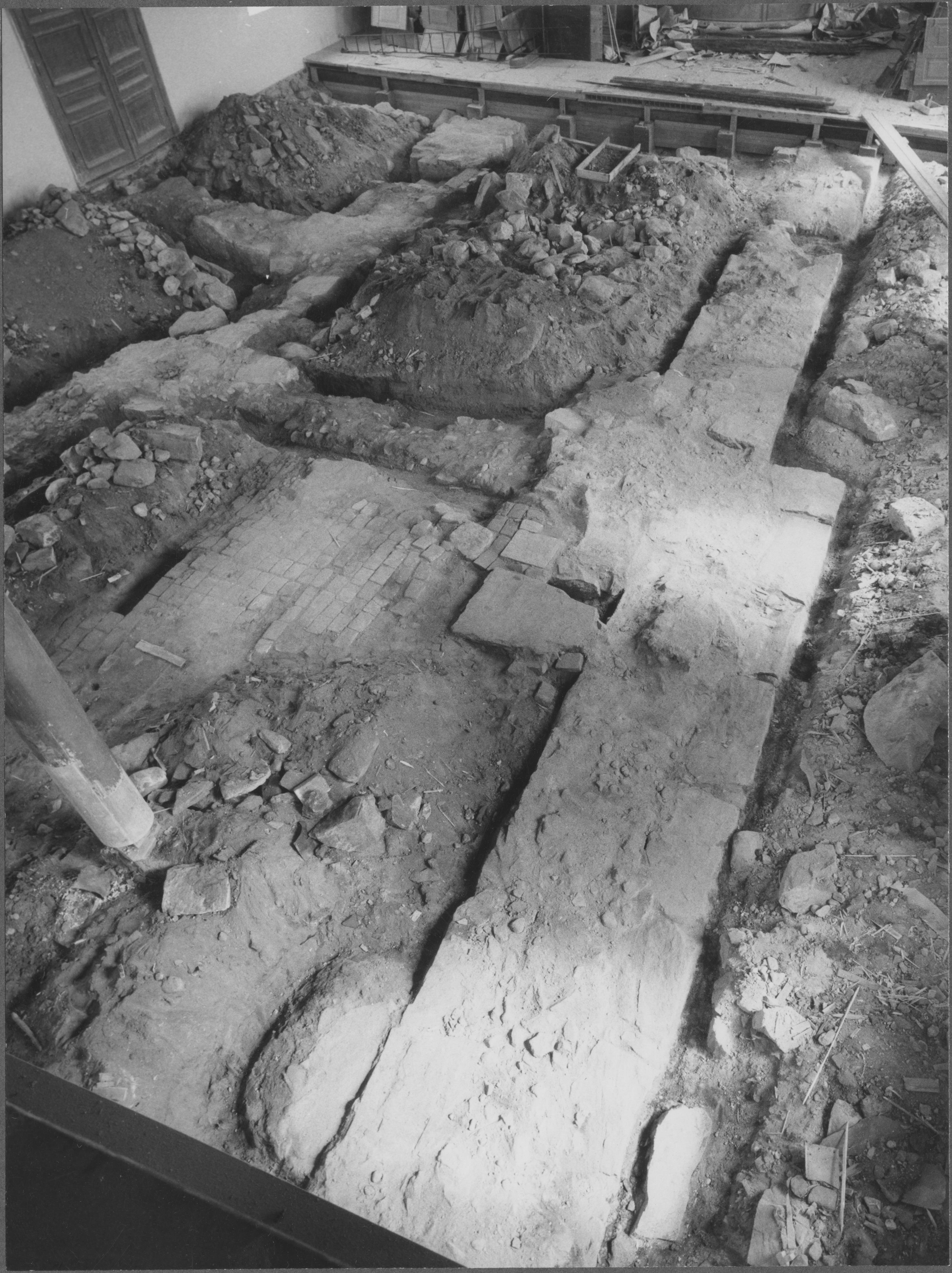 Beskrivning: Medeltidskyrkan. Grundmurar från väster.