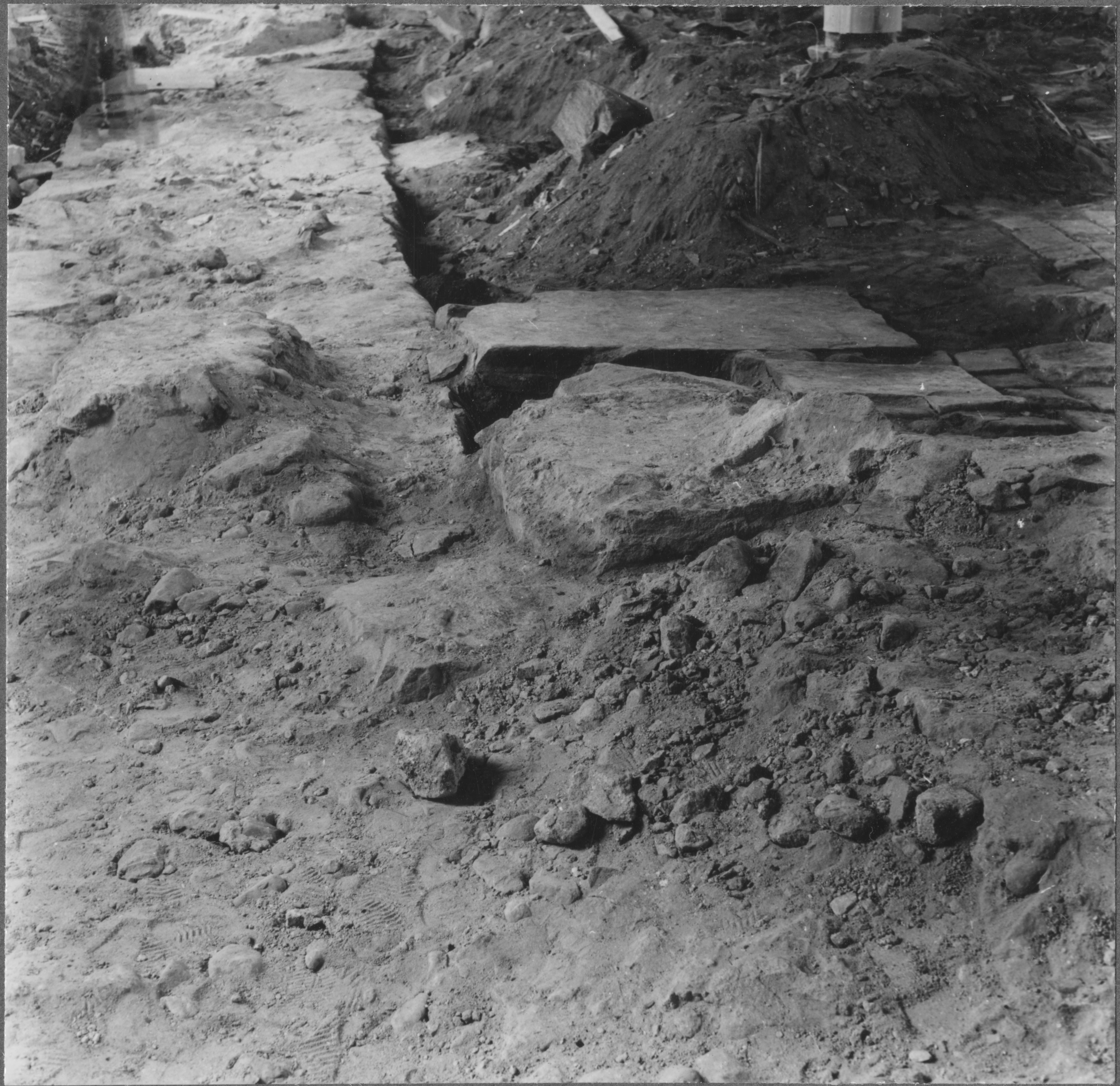 Beskrivning: Medeltidskyrkan. Pilastergrund, långusets södra grund. I förgrunden delar av triumfbågen.
