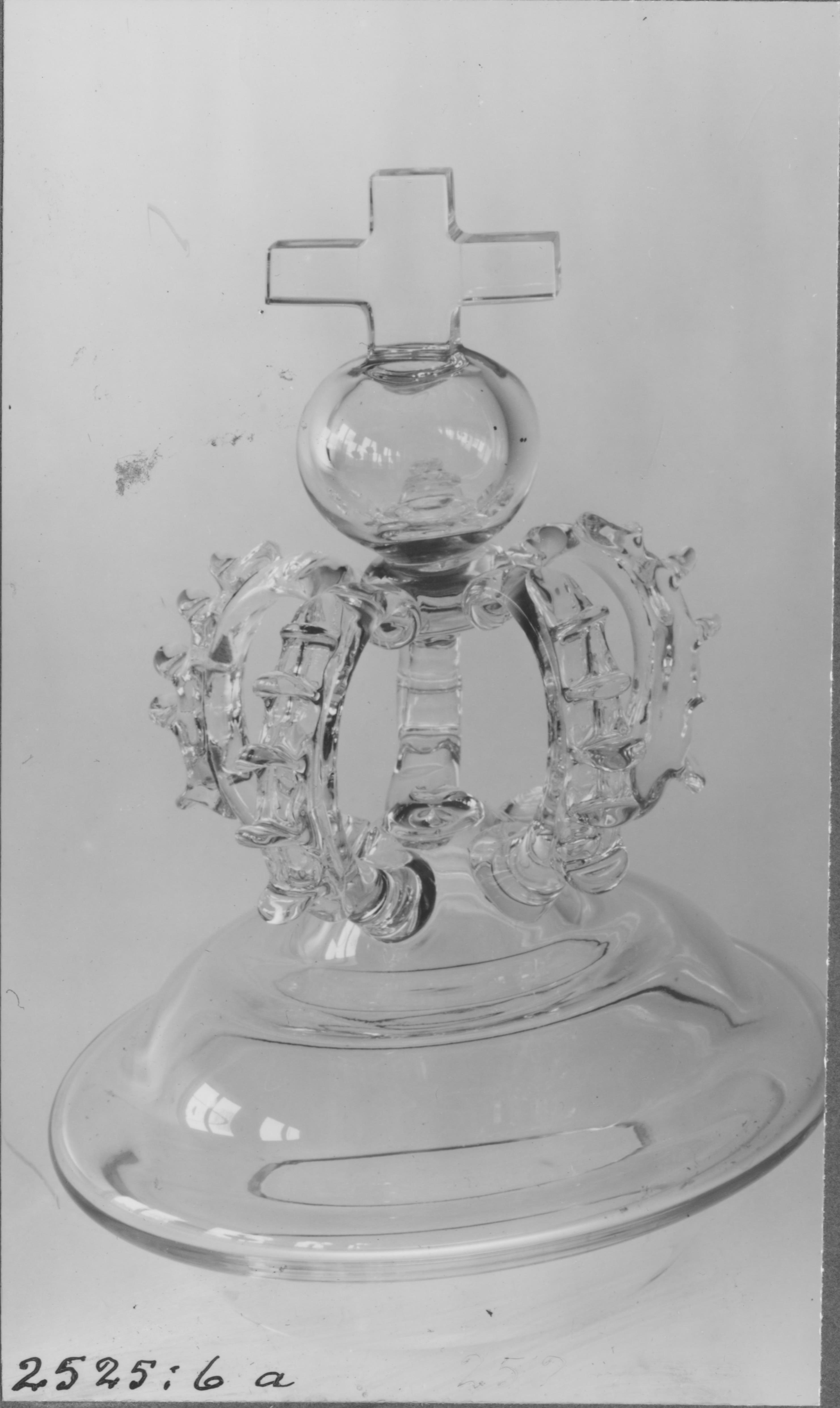 Beskrivning: Lock till vinkaraff (?) av glas som blåsts vid Rejmyre glasbruk.