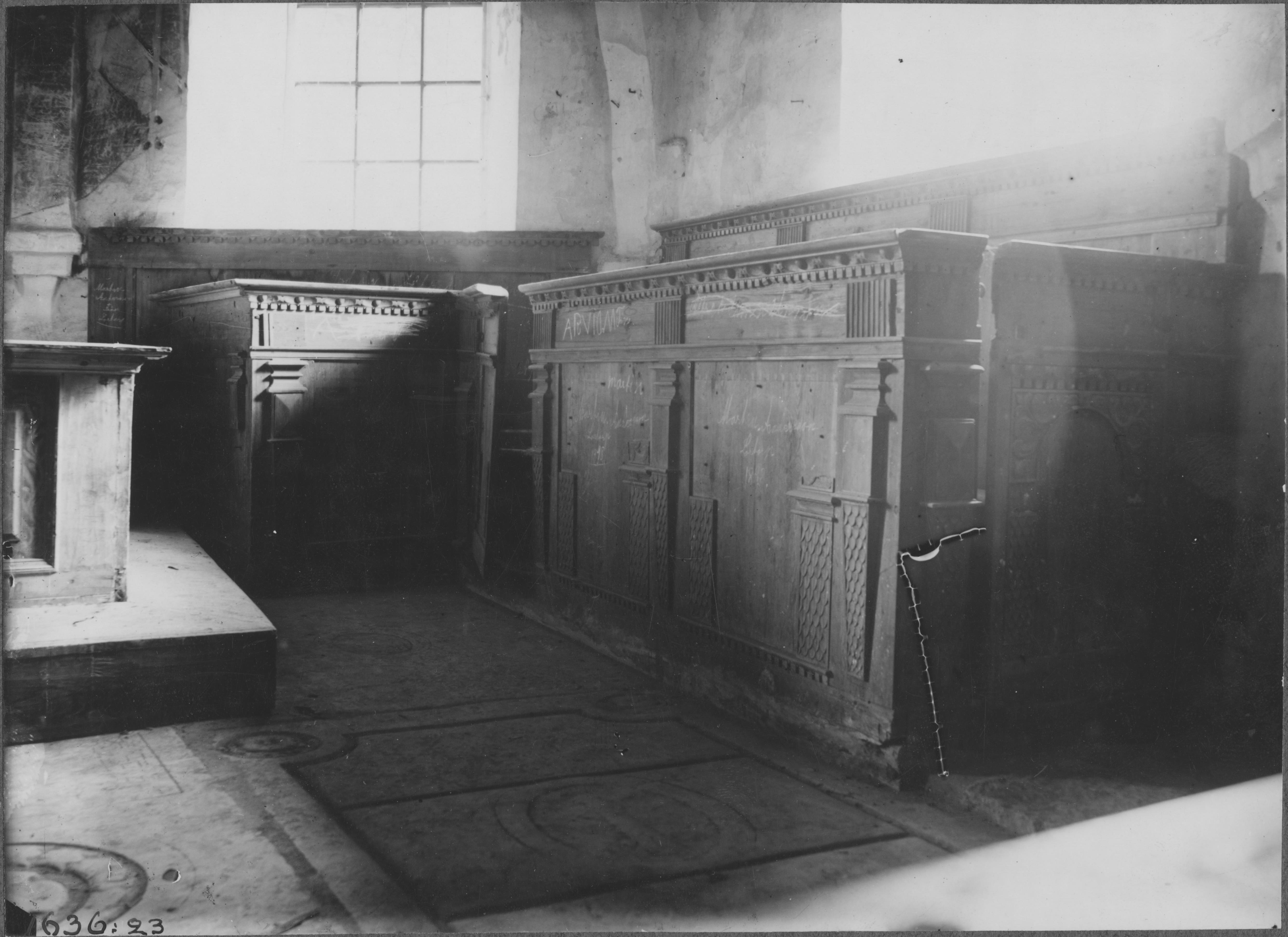 Beskrivning: Bänkinredning av furu. Snabbinventering.