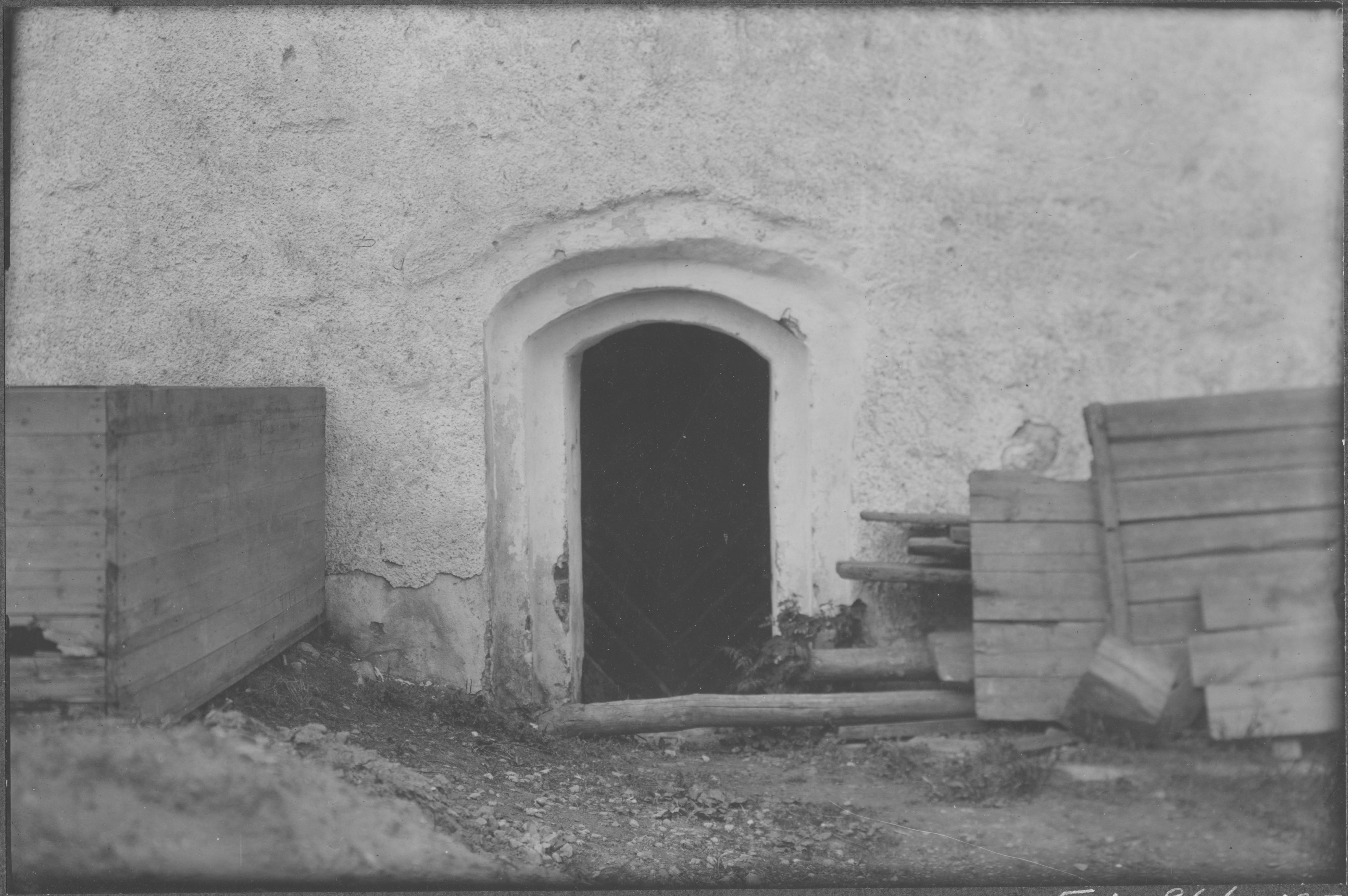 Beskrivning: Tiondebod vid kyrkan. Östra dörren.