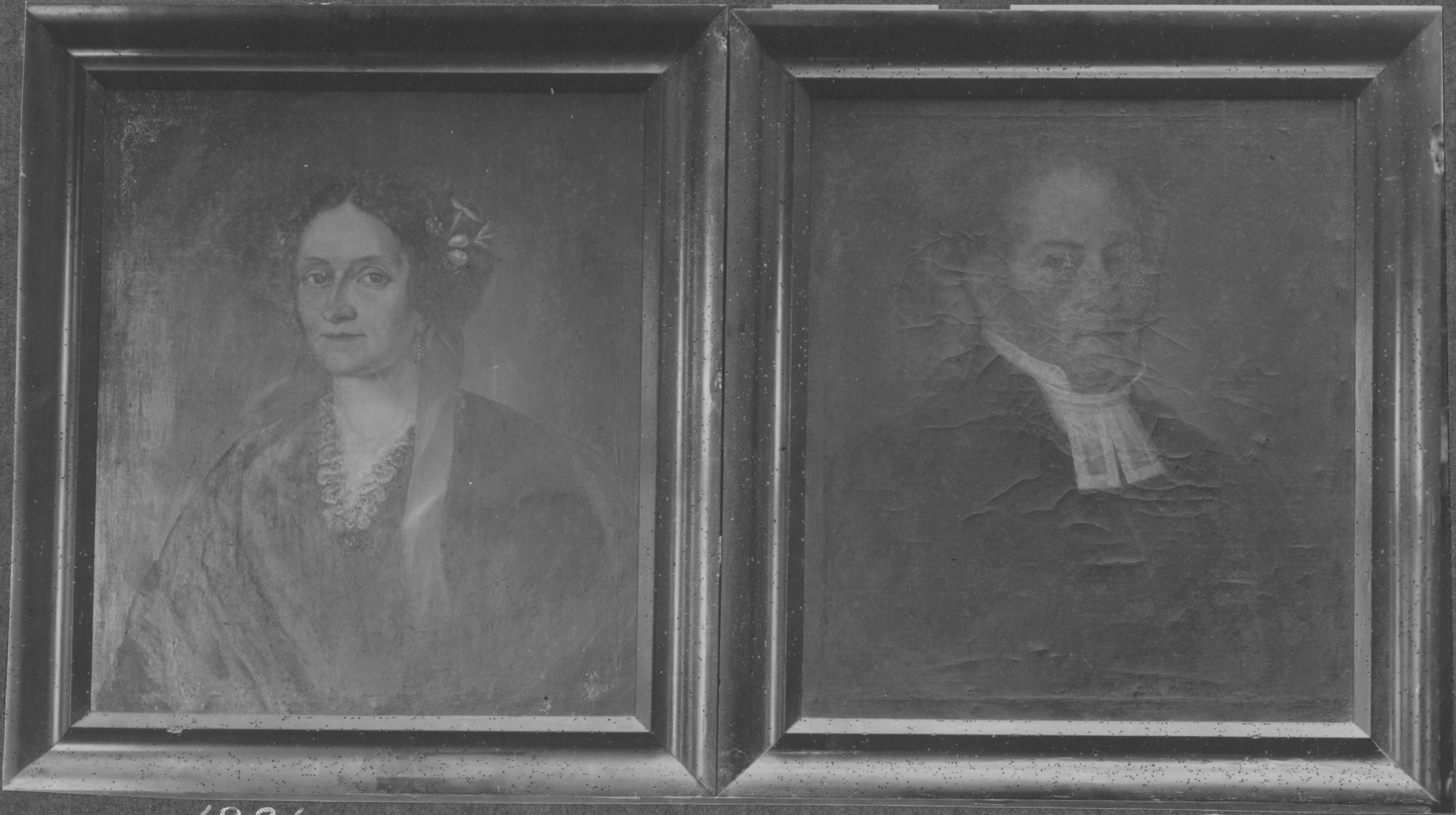 Beskrivning: Porträtt föreställande prostinnan och prosten Måhl. Olja på duk. Före konservering.