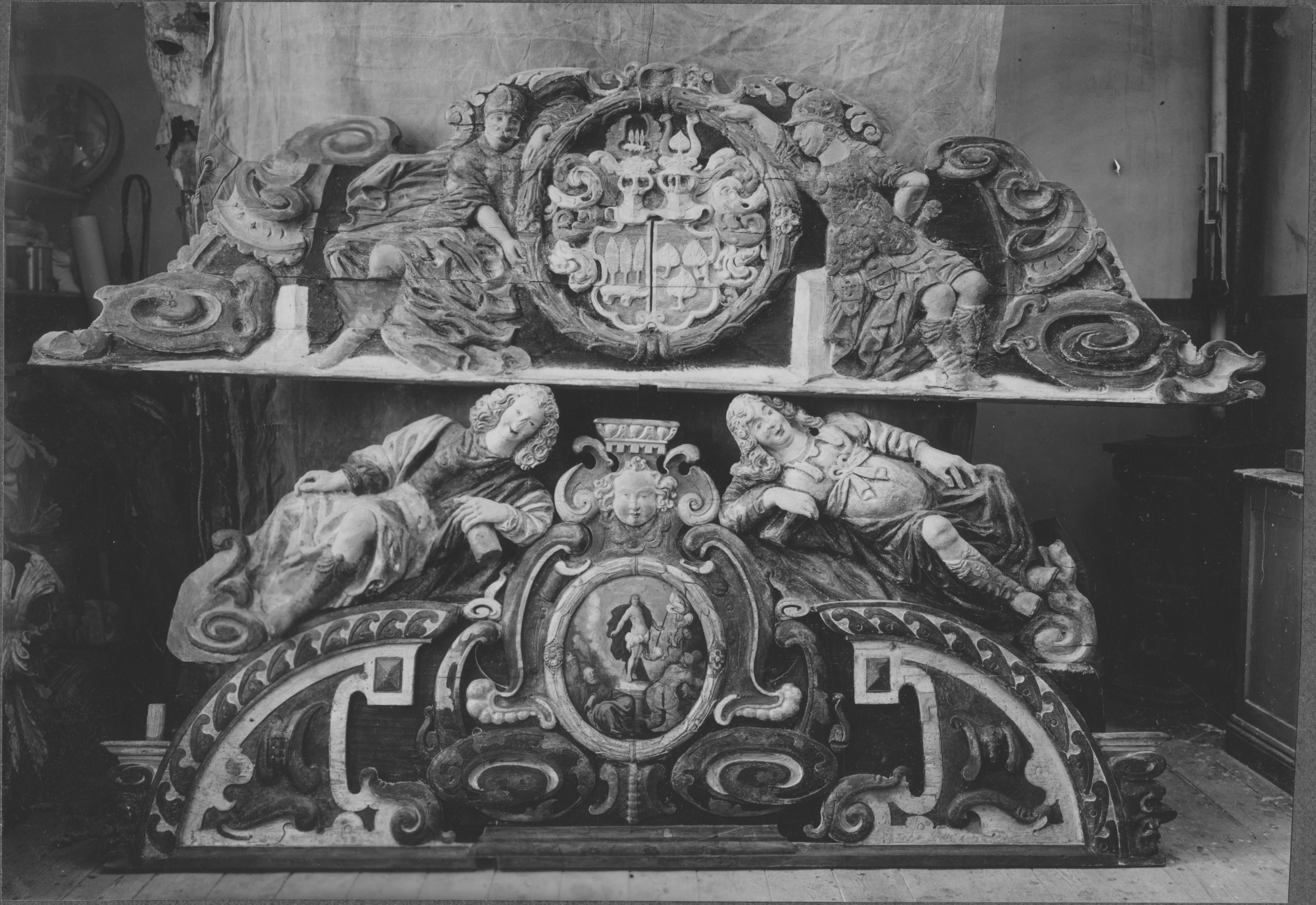 Beskrivning: Barocköverstycken. Efter konservering 1936.