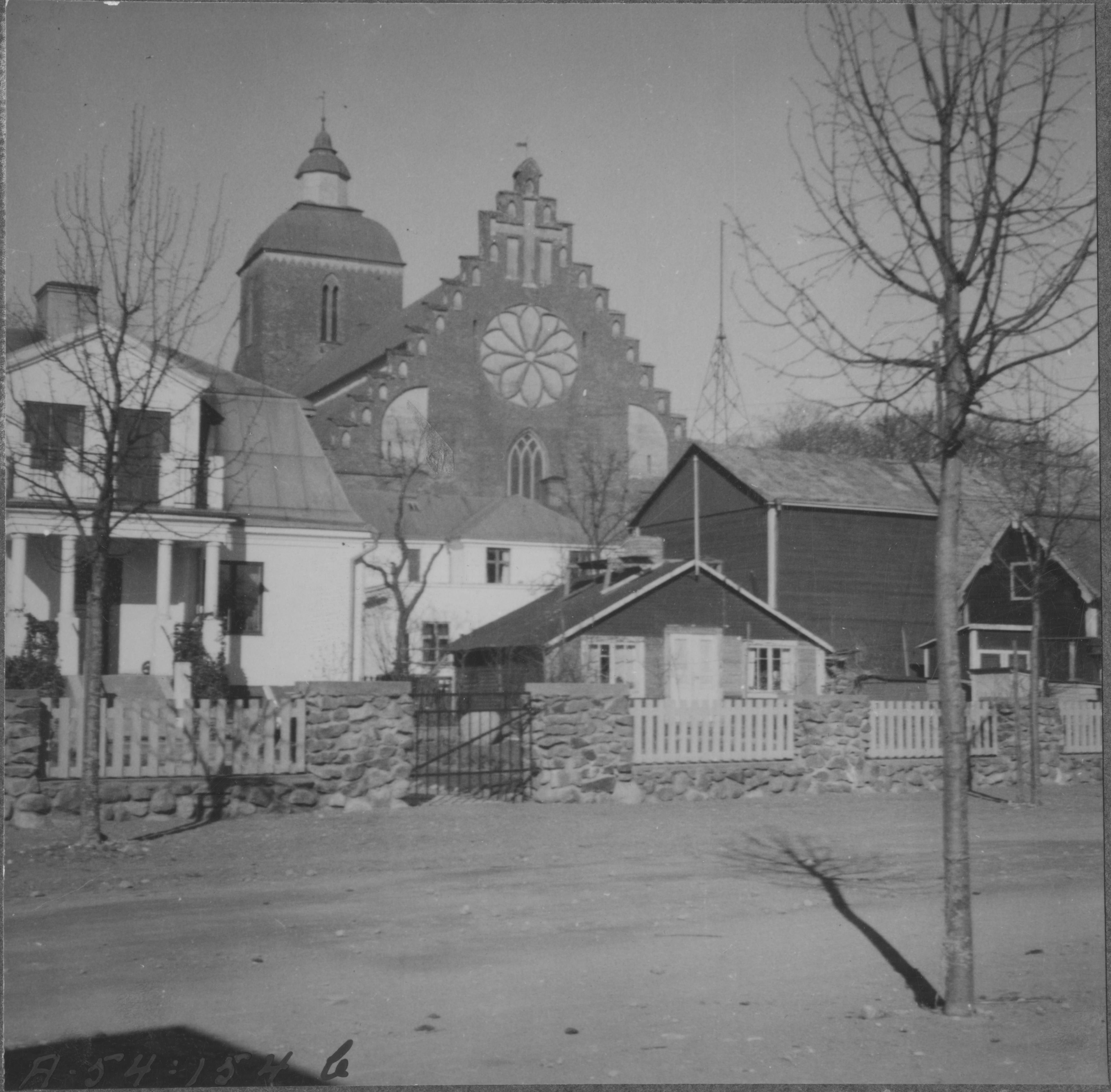 Beskrivning: Kyrkan med omgivning. Från öster.