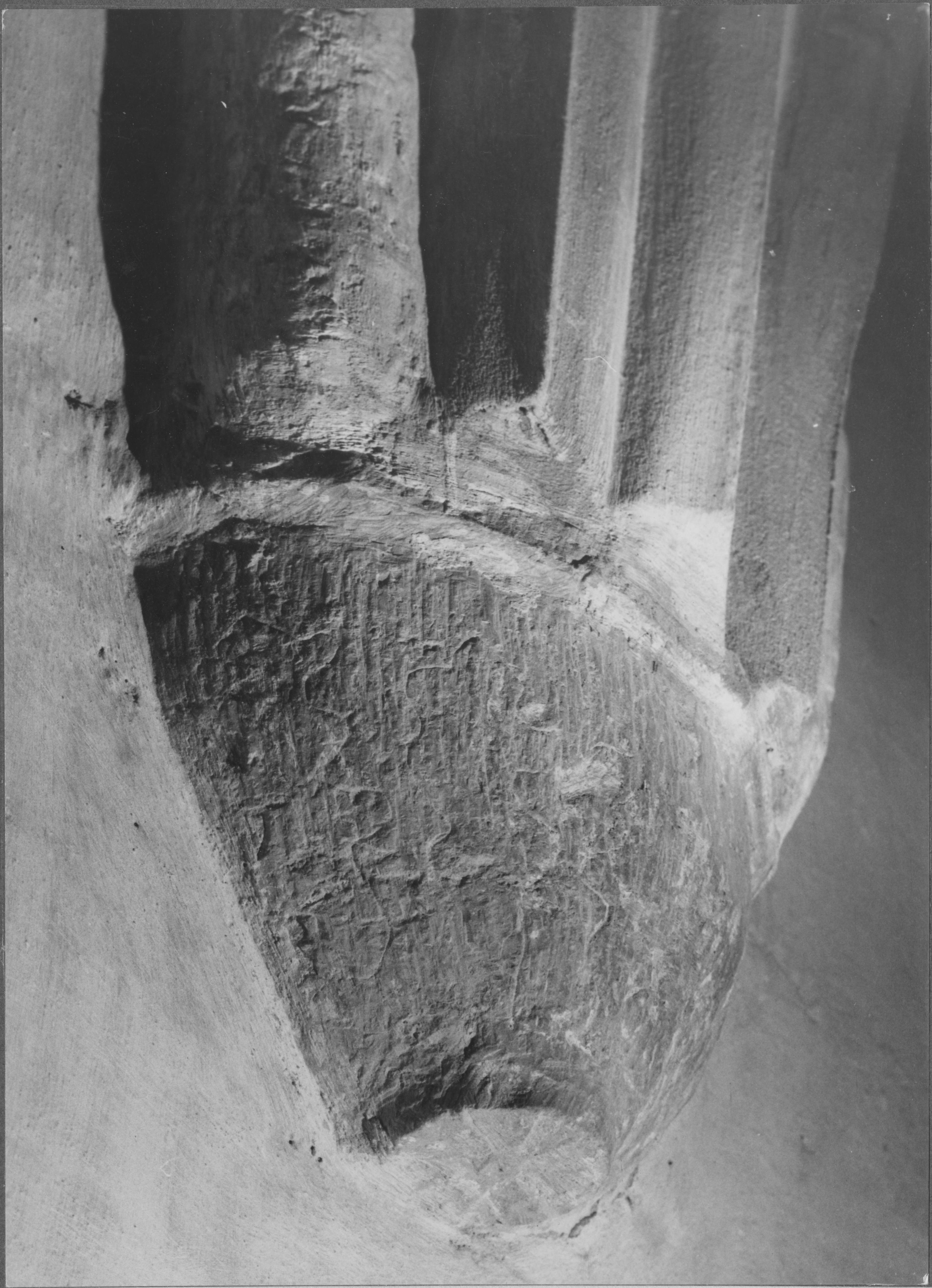 Beskrivning: Mittskeppet, södra sidan. Slutsten nummer 3 frän väster.