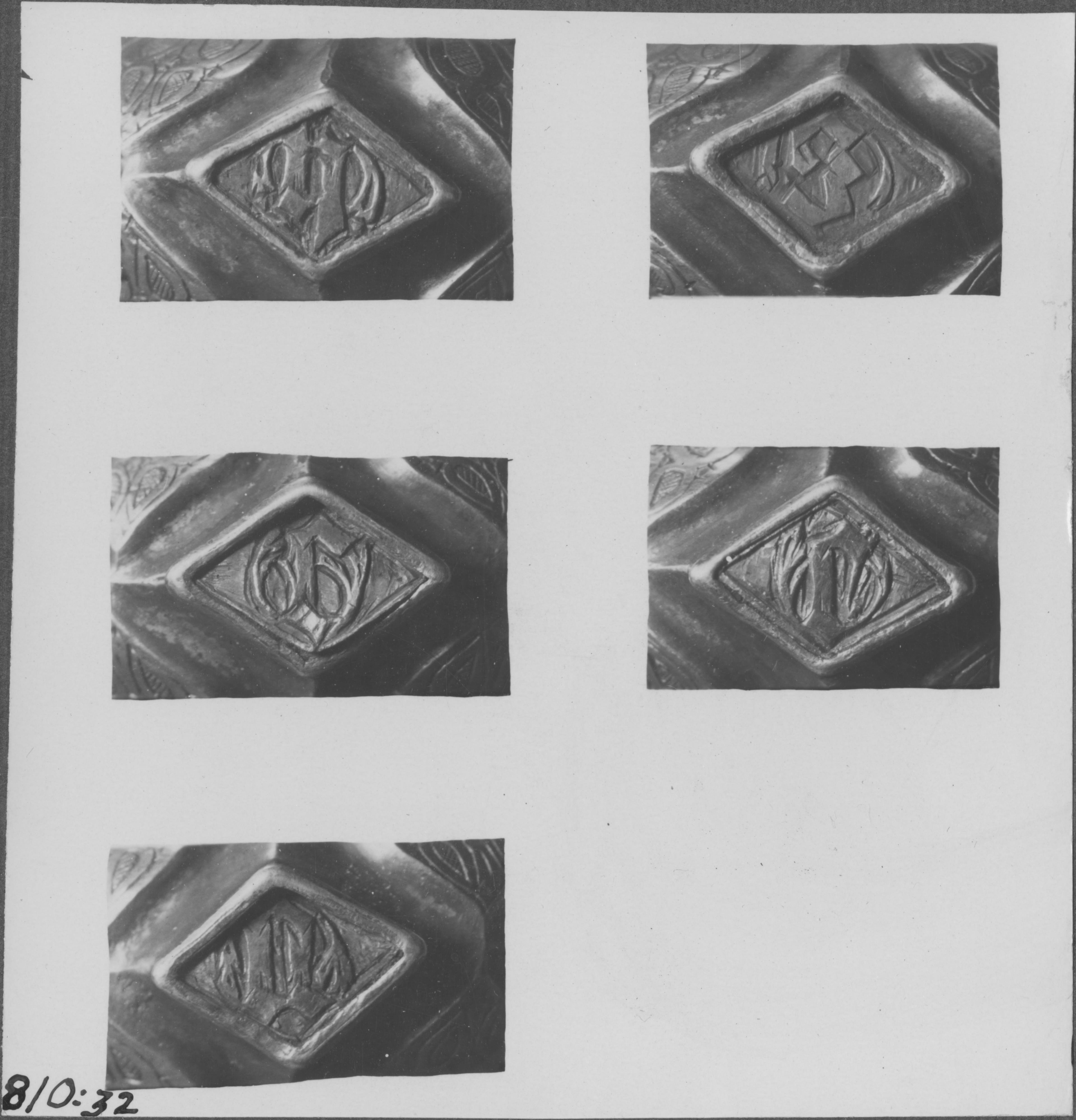 Beskrivning: Kalk av silver, förgylld. Sexpassformad fot med fastskruvat krucifix, graveringar av S:t Göran, Katarina av Alexandria och Johannes evangelisten växlande med sengotiska blommor. Ornerat nod. Detalj. Svenskt arbete, omkring 1500.