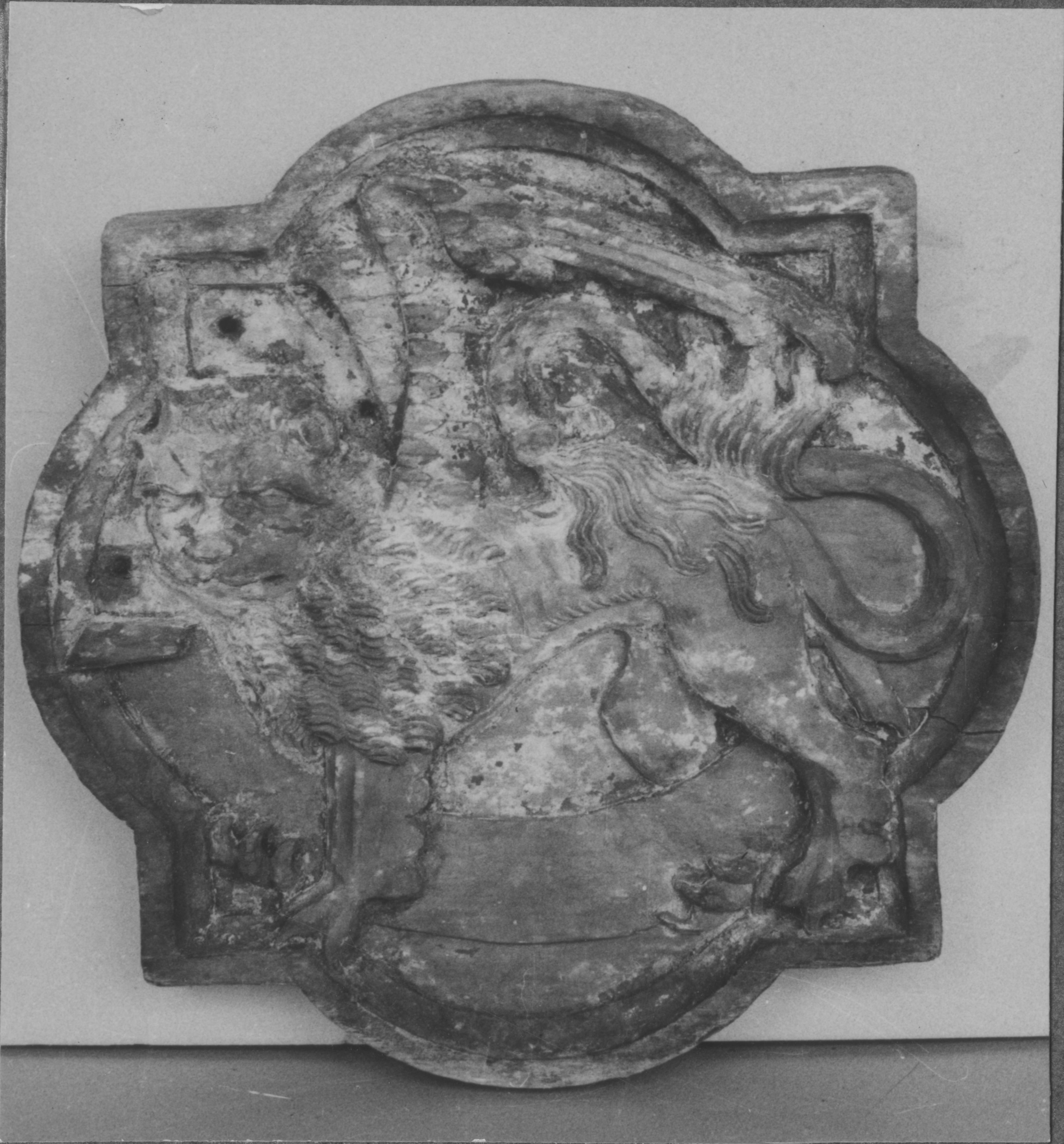 Beskrivning: Krucifix, detalj från korset. Före restaurering.