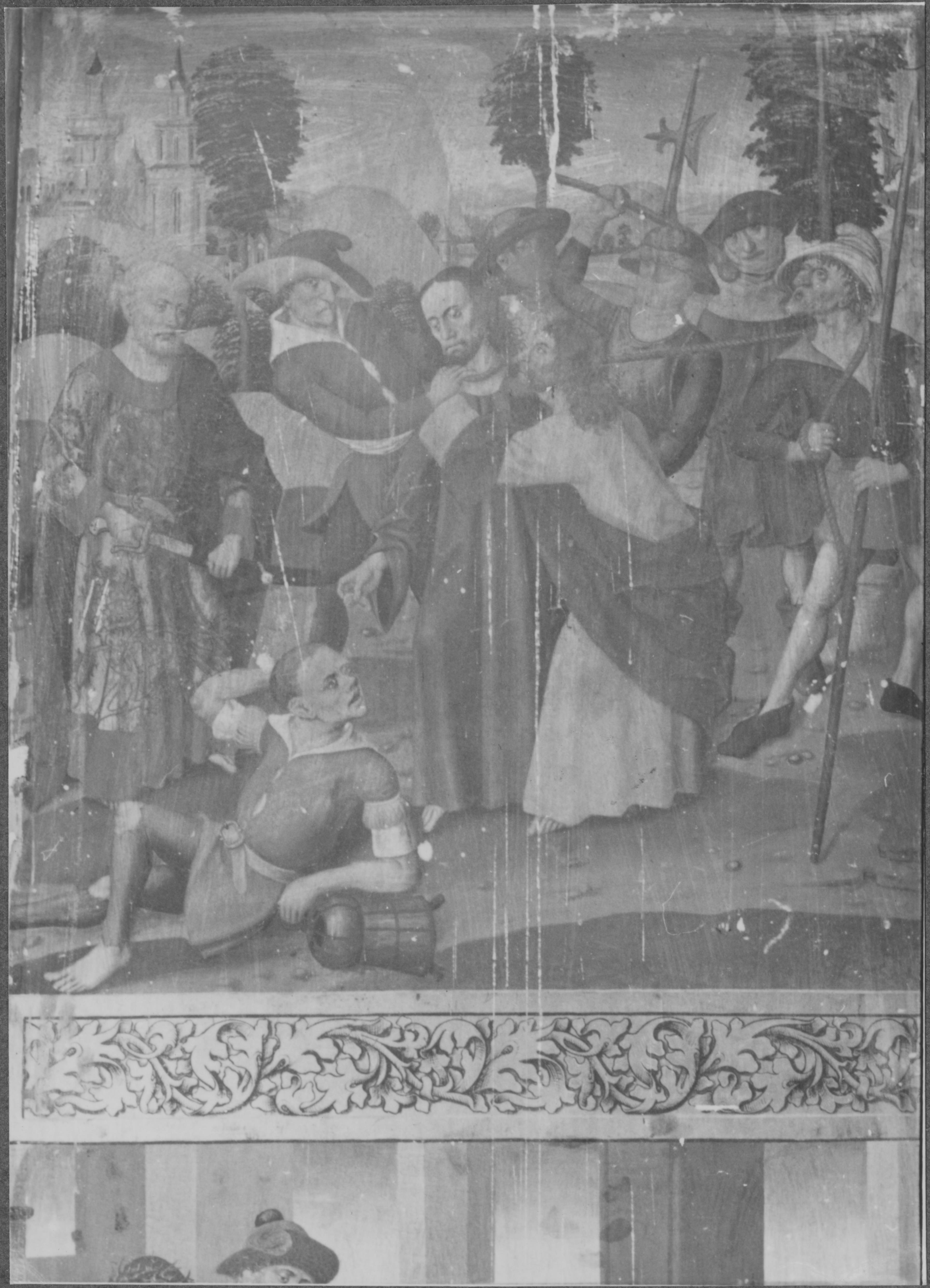 Beskrivning: Altarskåpsdörren, inre högra, utsidan. Detalj.
