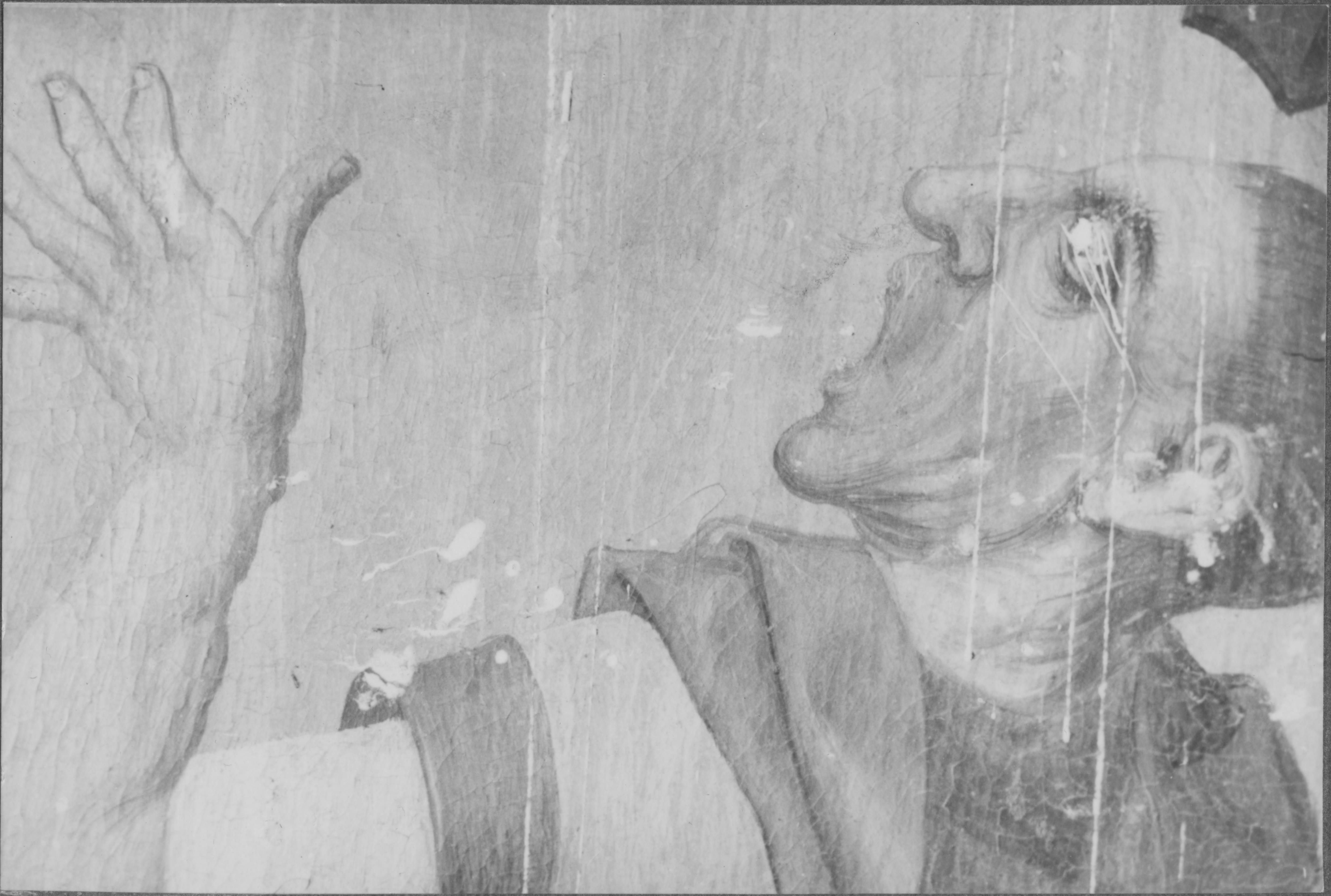 Beskrivning: Altarskåpsdörren, högra inre, utsidan. Detalj.