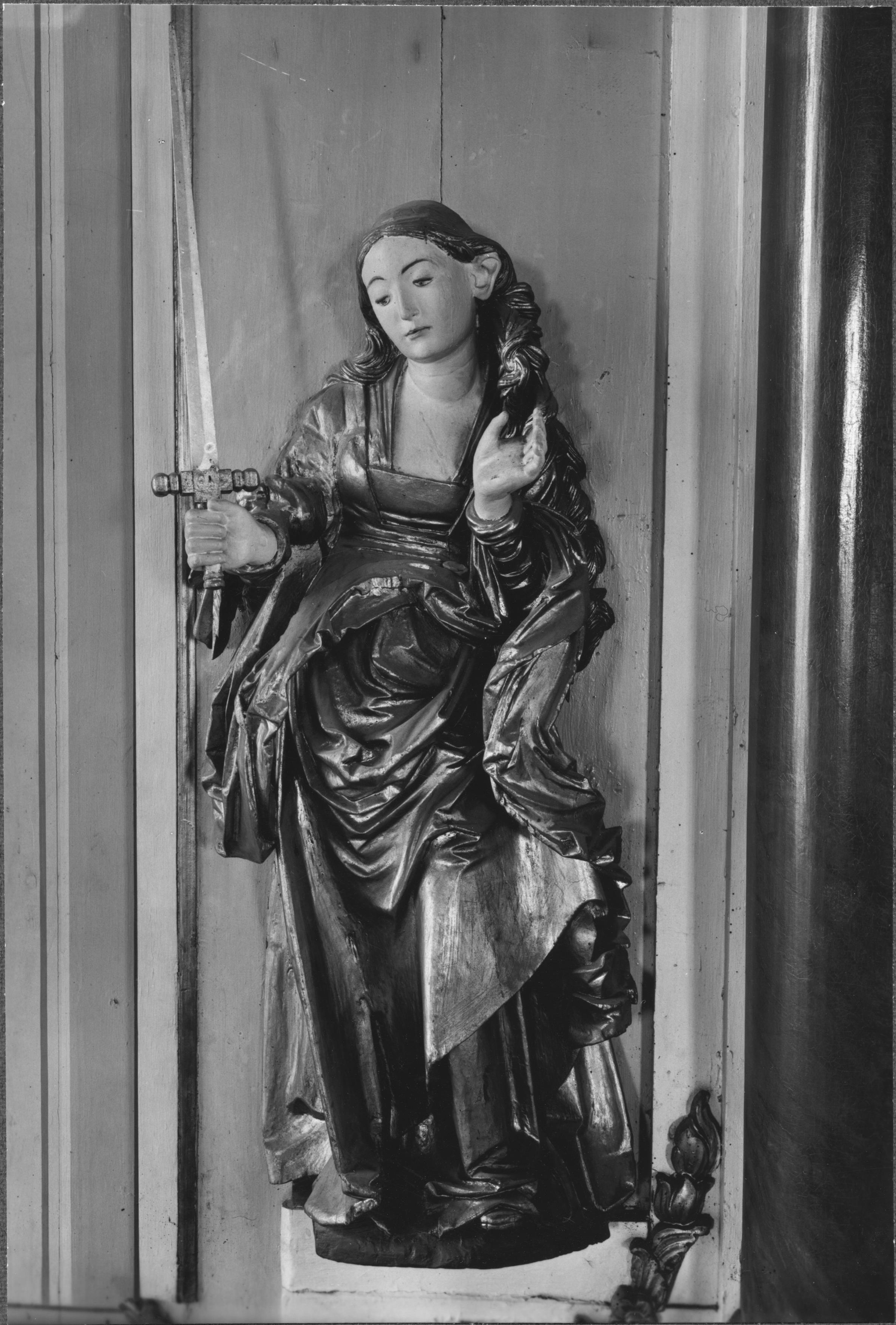 Beskrivning: Träskulptur föreställande Maria Magdalena. Sveriges kyrkor.