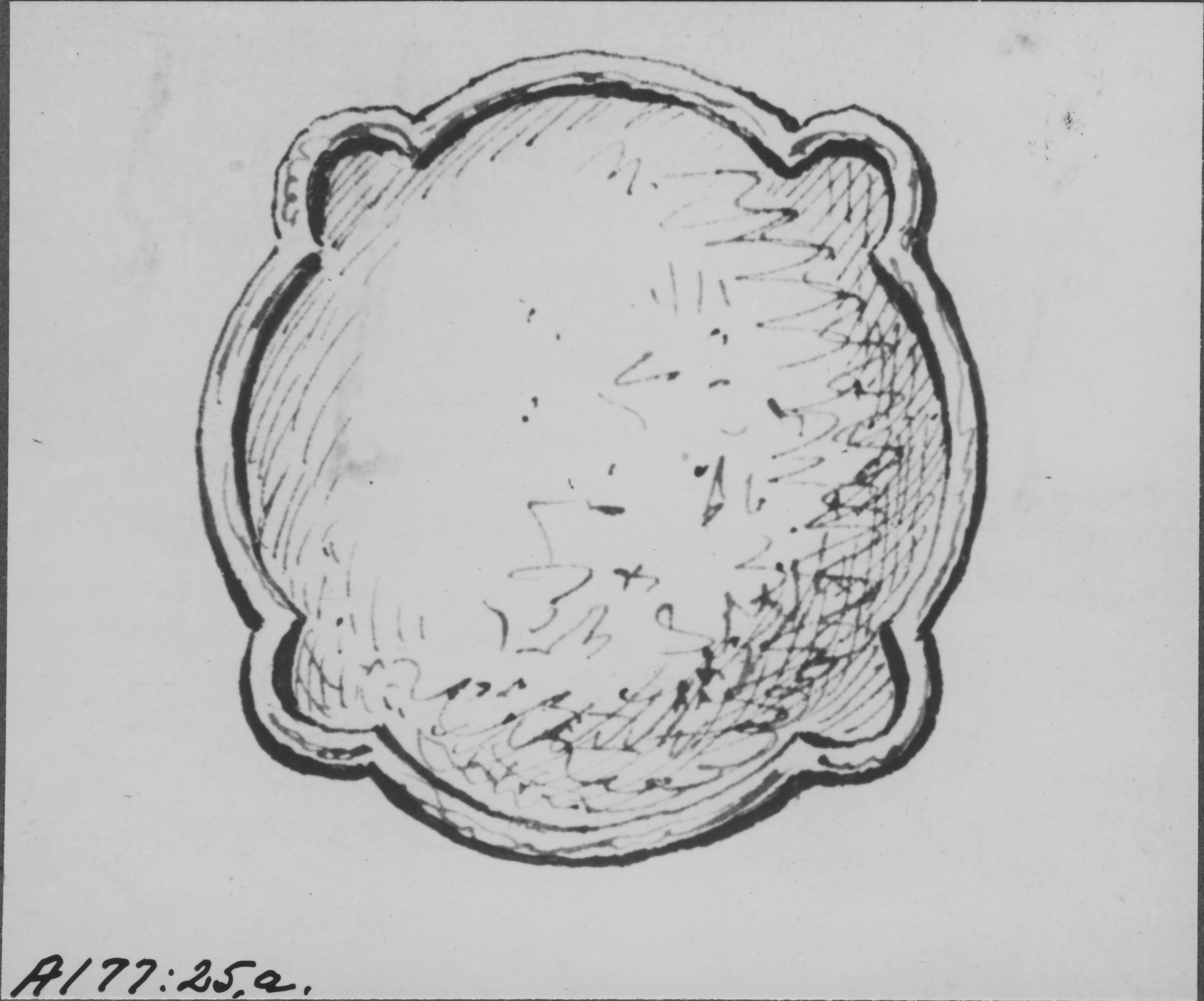 Beskrivning: Teckning föreställande dopfunt av kalksten. Ur P. A. Säve, Berättelse 1862. ATA.