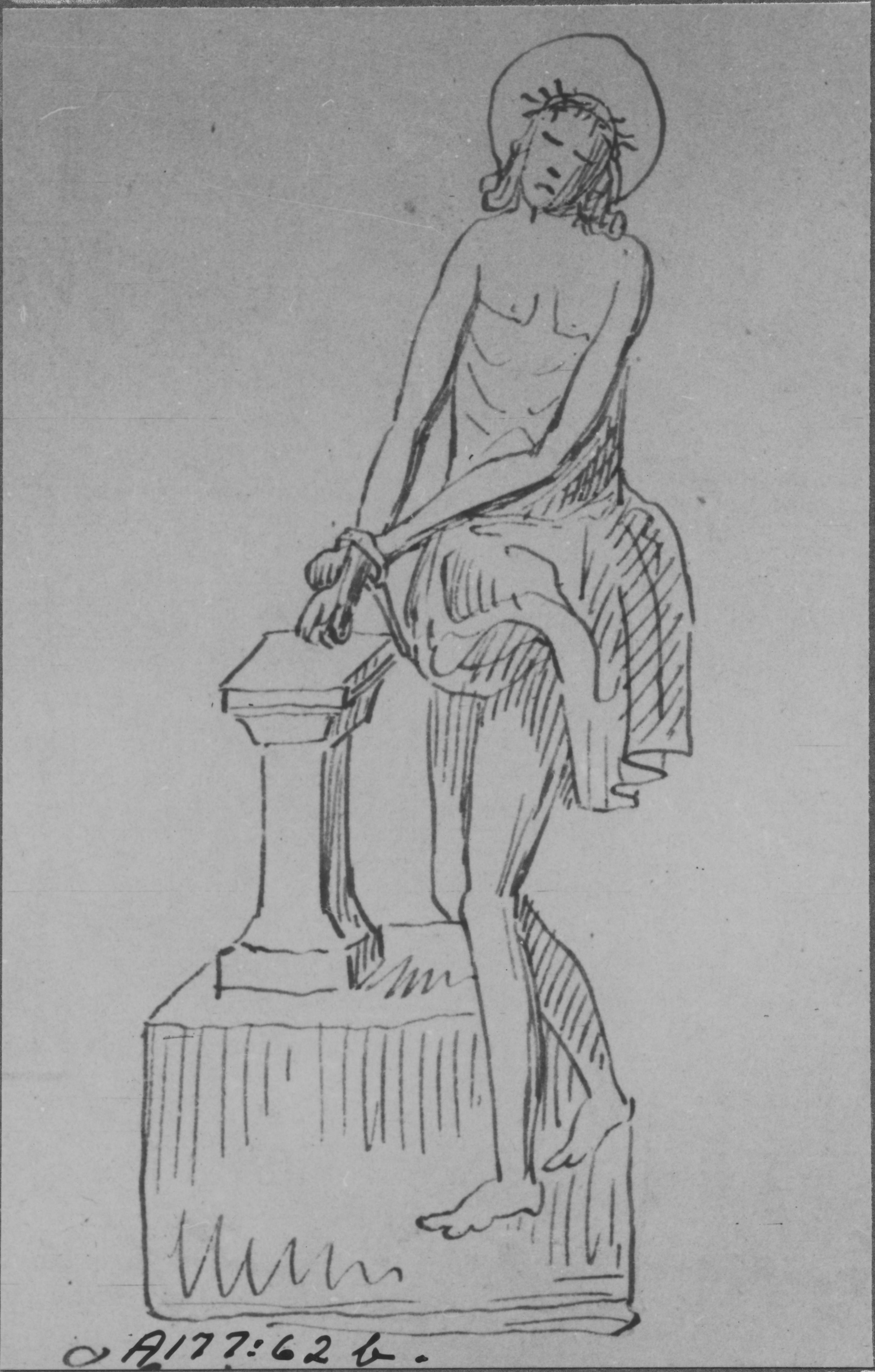 Beskrivning: Kristus med bundna händer. Teckning av ur P.A. Säve, 1862.