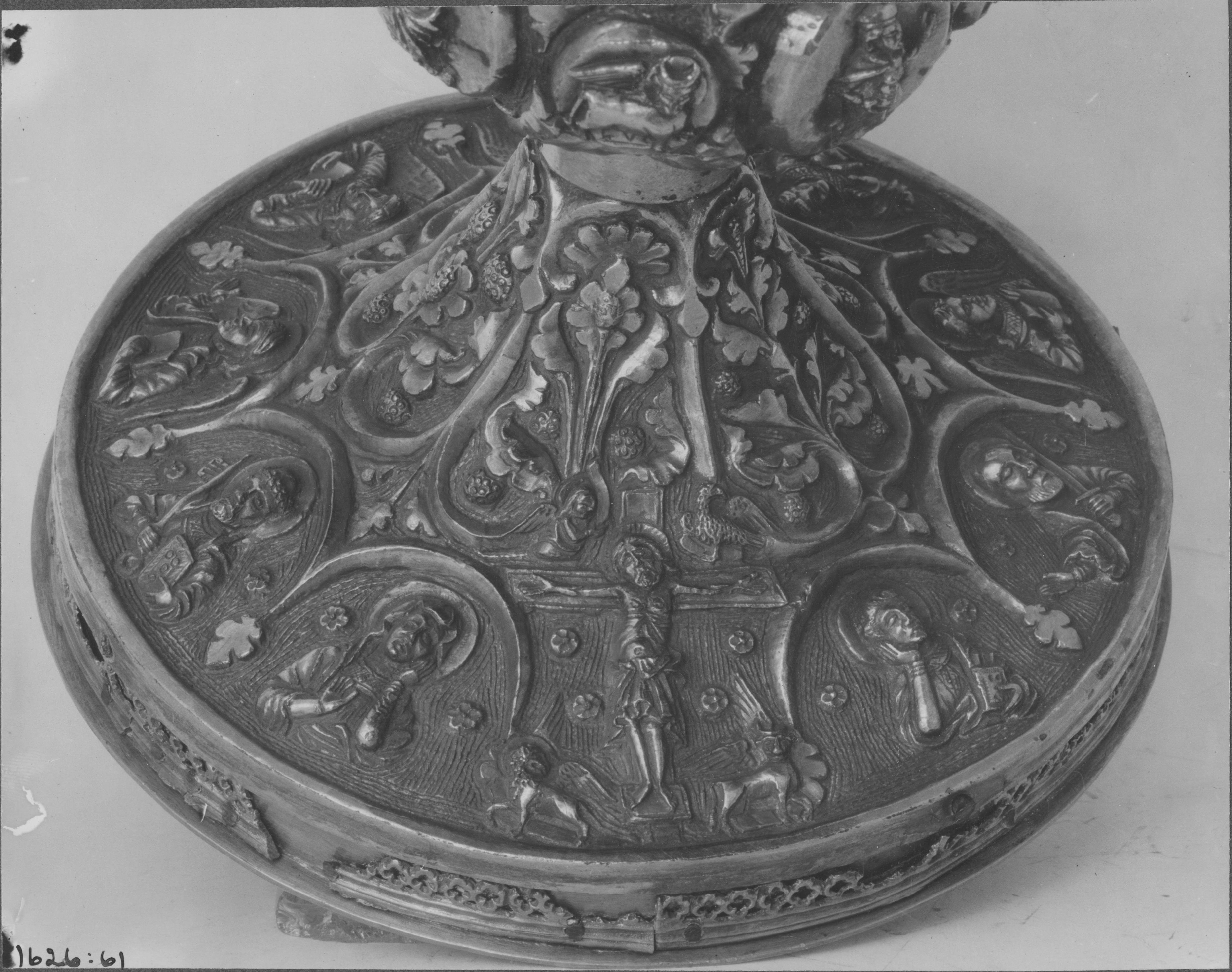 Beskrivning: Kalk av förgyllt silver från omkring 1240, detalj.