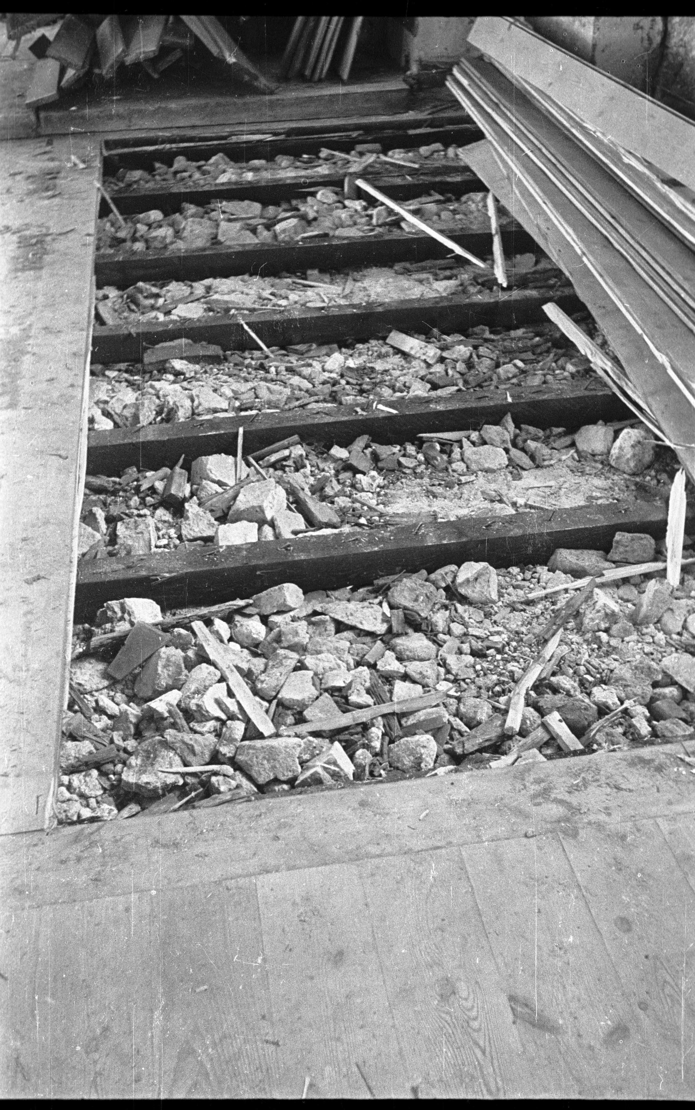 Beskrivning: Syllar med fyllning under 1884 års brädgolv
