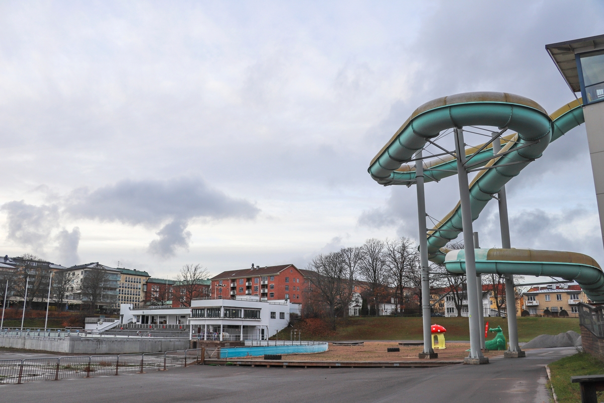 Titel: Baksidan på simhallen i Linköping mot Tinnerbäcksbadet