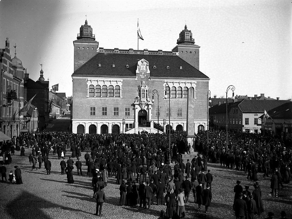 Rådhusinvigning, folkmassa på torget.