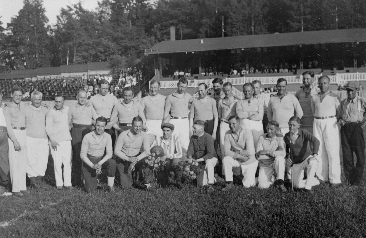 Under Boråsmässan 1933. Okänt lag vid Ryavallen.