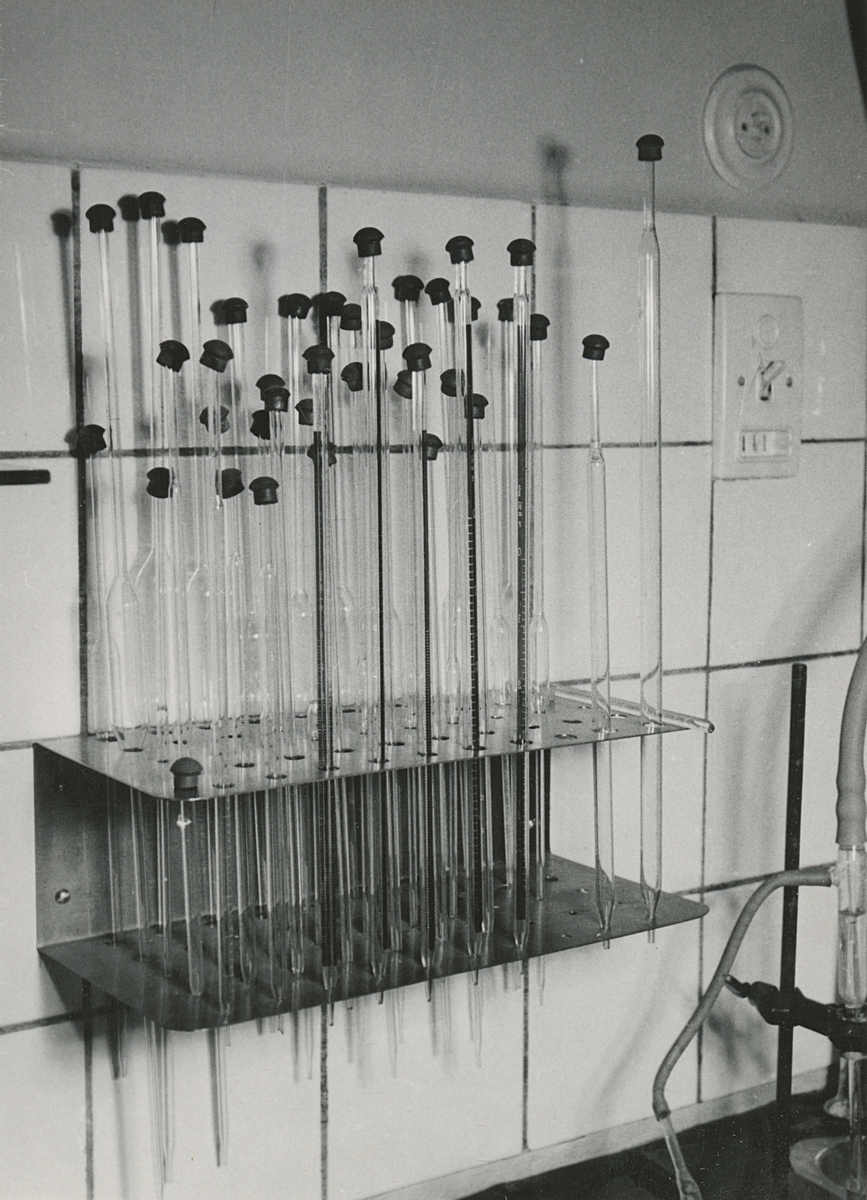Apoteket Kronan, laboratorium. Glaspipetter.