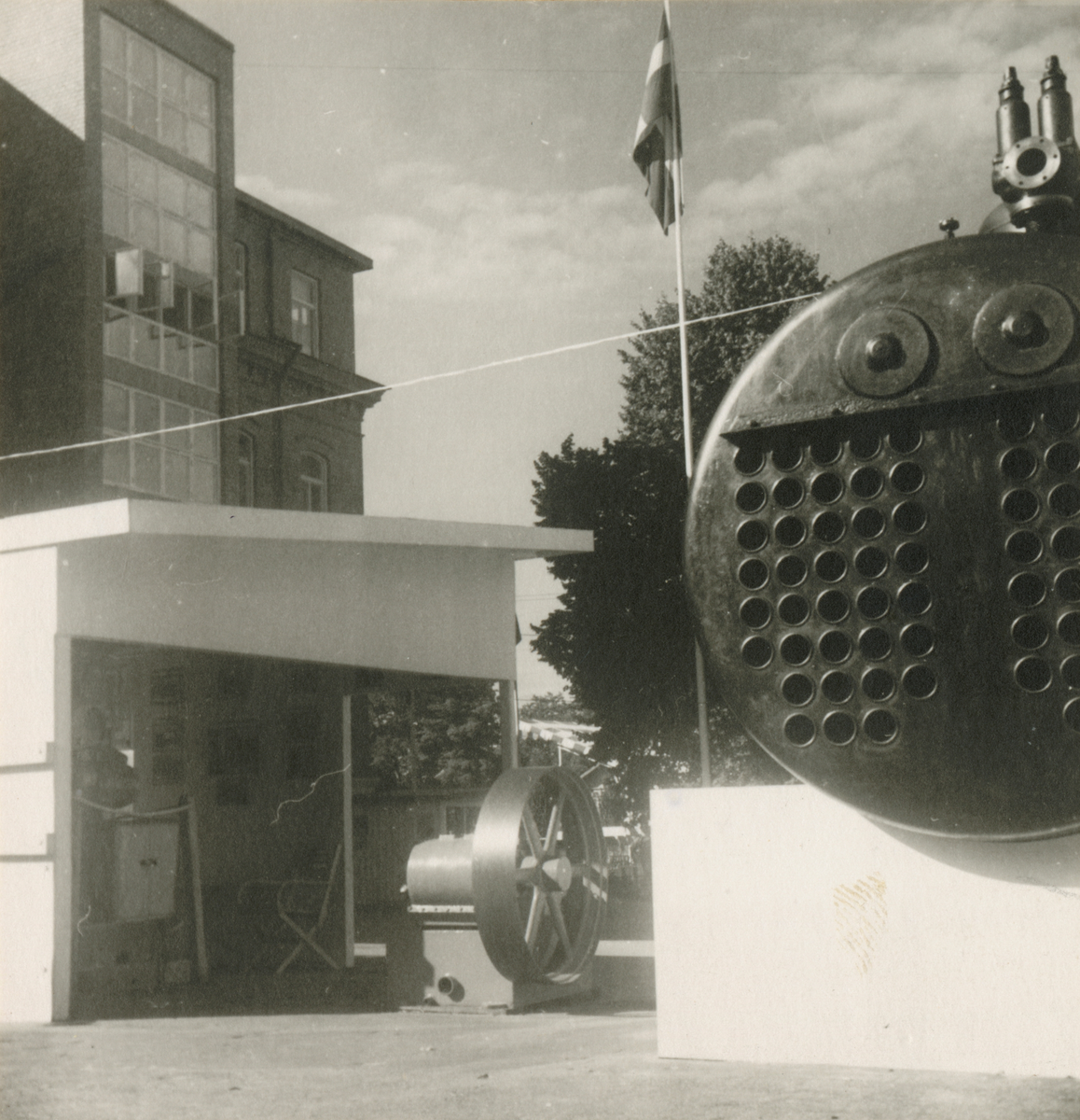 Borås Mekaniska Verkstad visar sina textilmaskiner och kugghjulsautomater vid Boråsmässan 12-21 aug 1949.