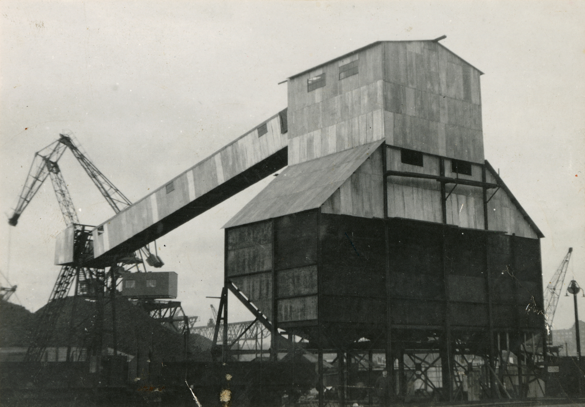 Kross, sortér och lageranläggning för koks. Sannegårdshamnen i Göteborg år 1931-32.