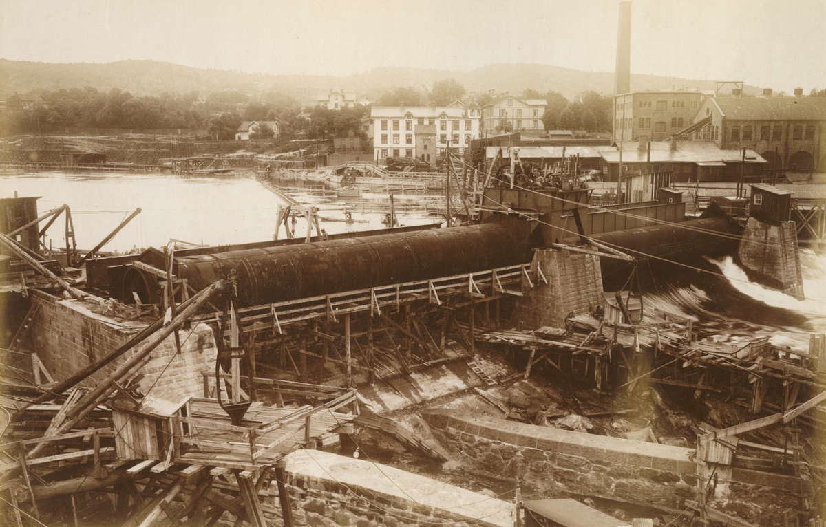 Från montage av valsdamm vid Lilla Edet år 1915.
