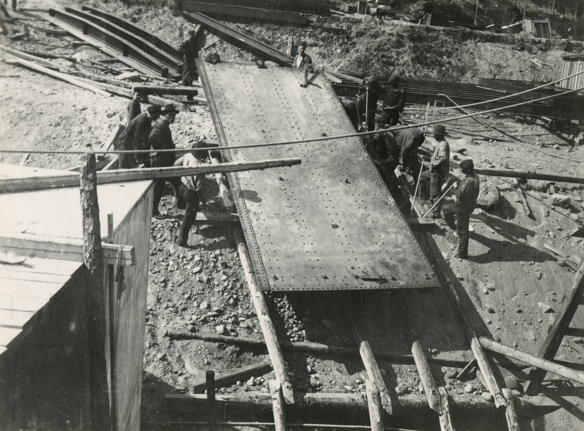 Finnforsens kraftverk år 1911. Transport av lucka.