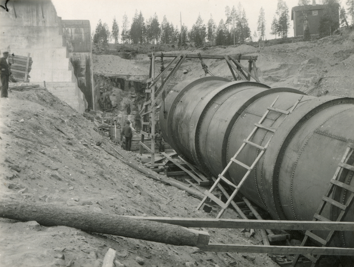 Finnforsens kraftverk år 1911. Montage, turbintub.