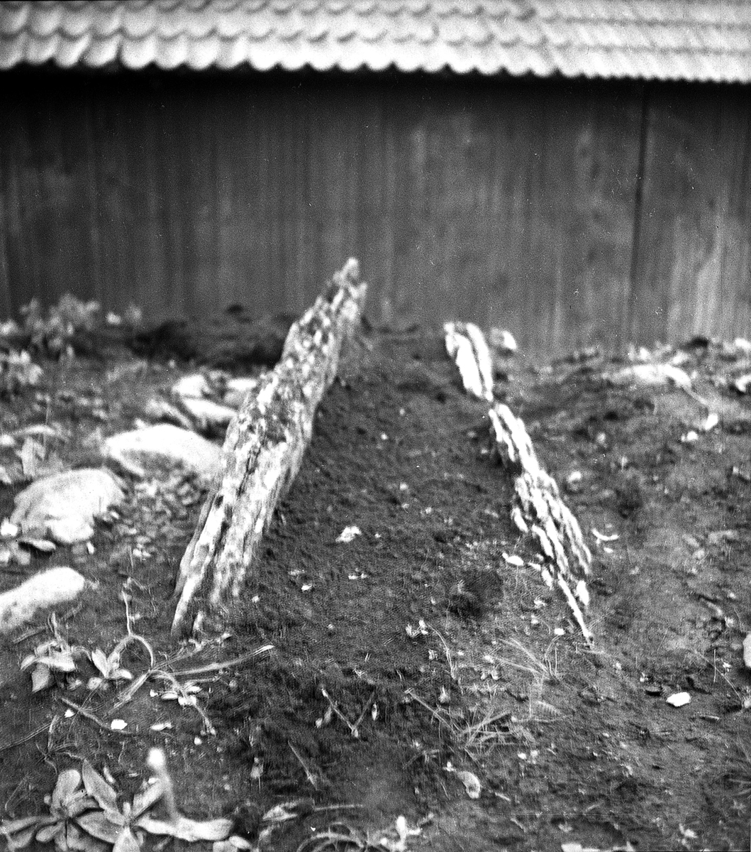 Titel: Kv. Taggsvampen, Falköping. Restaurerad hällkista nära Rantens Snickerifabrik.