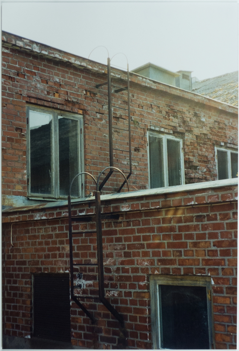 Dokumentation av Maskinverkstads exteriör. Skadade tegelmurar.