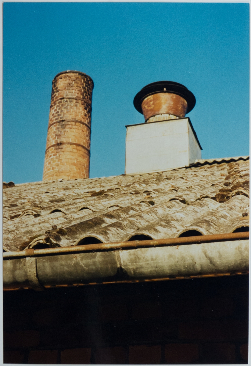 Maskinverkstad, ventilationshuv, eternittak i dåligt skick
