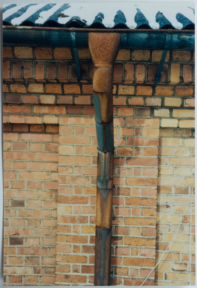 Maskinverkstad, hängränna, stuprör varmförzinkad, skarpa kanter, omvikningskupa (spänntratt)