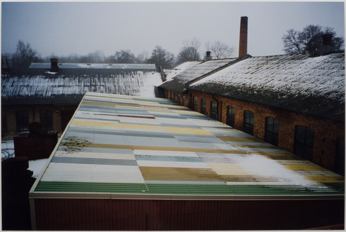 Renseriets tak av trapetskorrugerad plåt i olika kulörer