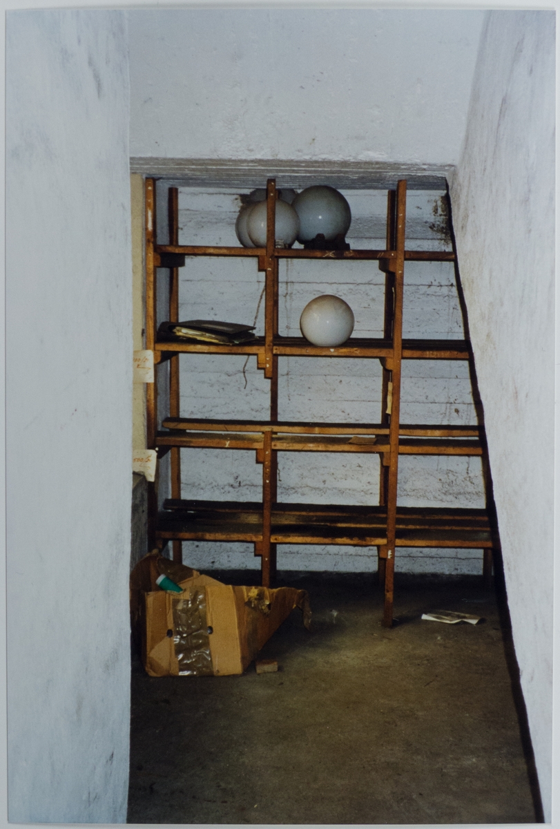 Maskinverkstaden: dokumentation inför utvändig restaurering. Elförråd under trappan vid östra gaveln
