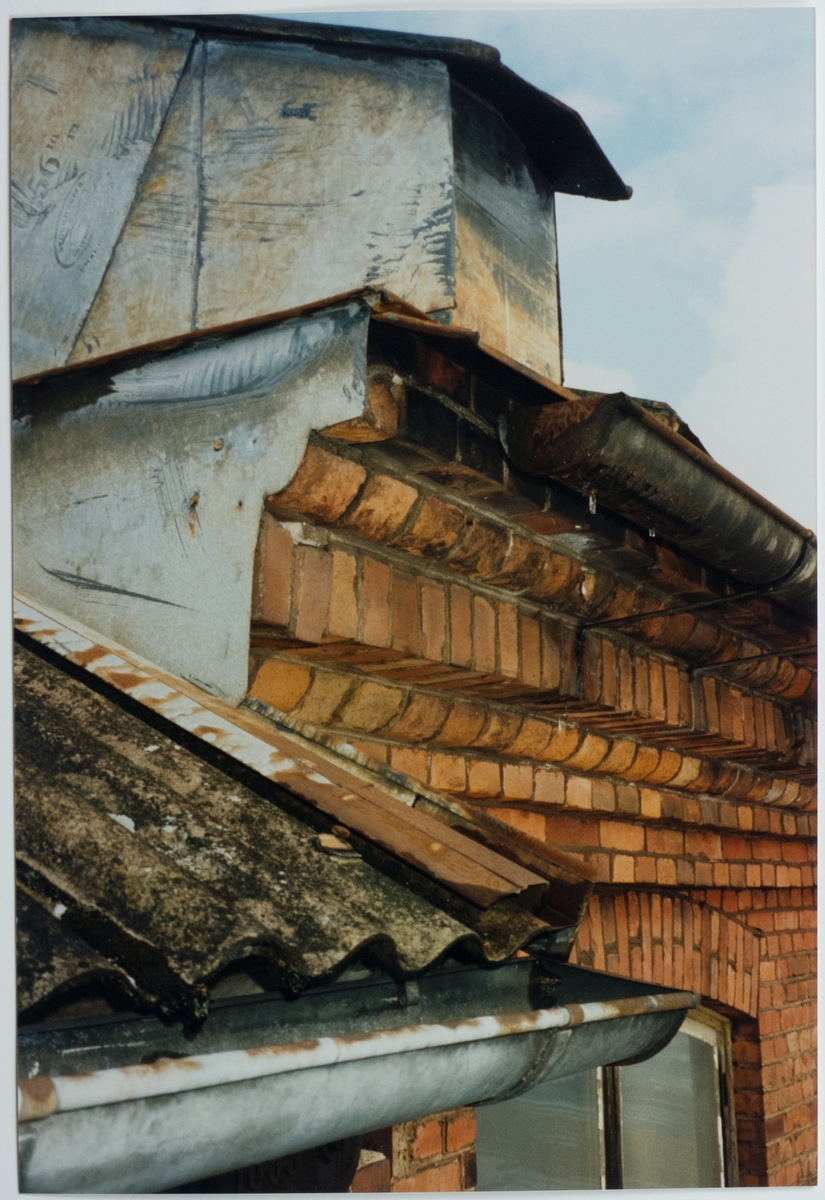 Maskinverkstad, värmeförzinkad plåt med stämpel på brandmur, nivåskillnad i takfot
