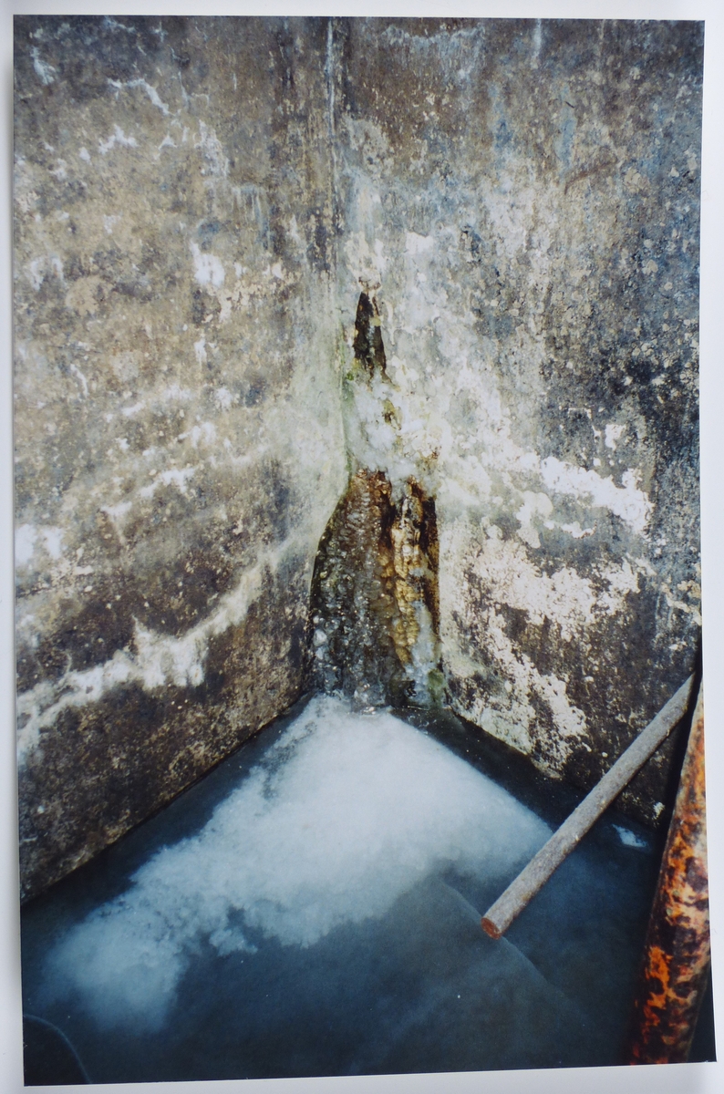 Elektricitetshuset, vattenläcka på södra fasaden.