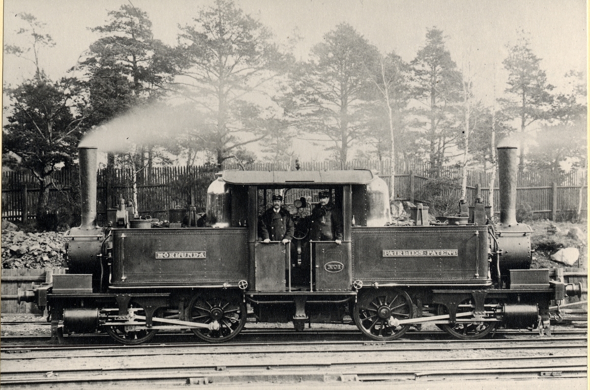 Männen på loket är till höger Lokförare C W Sundvall och till vänster lokeldare A F Magnusson