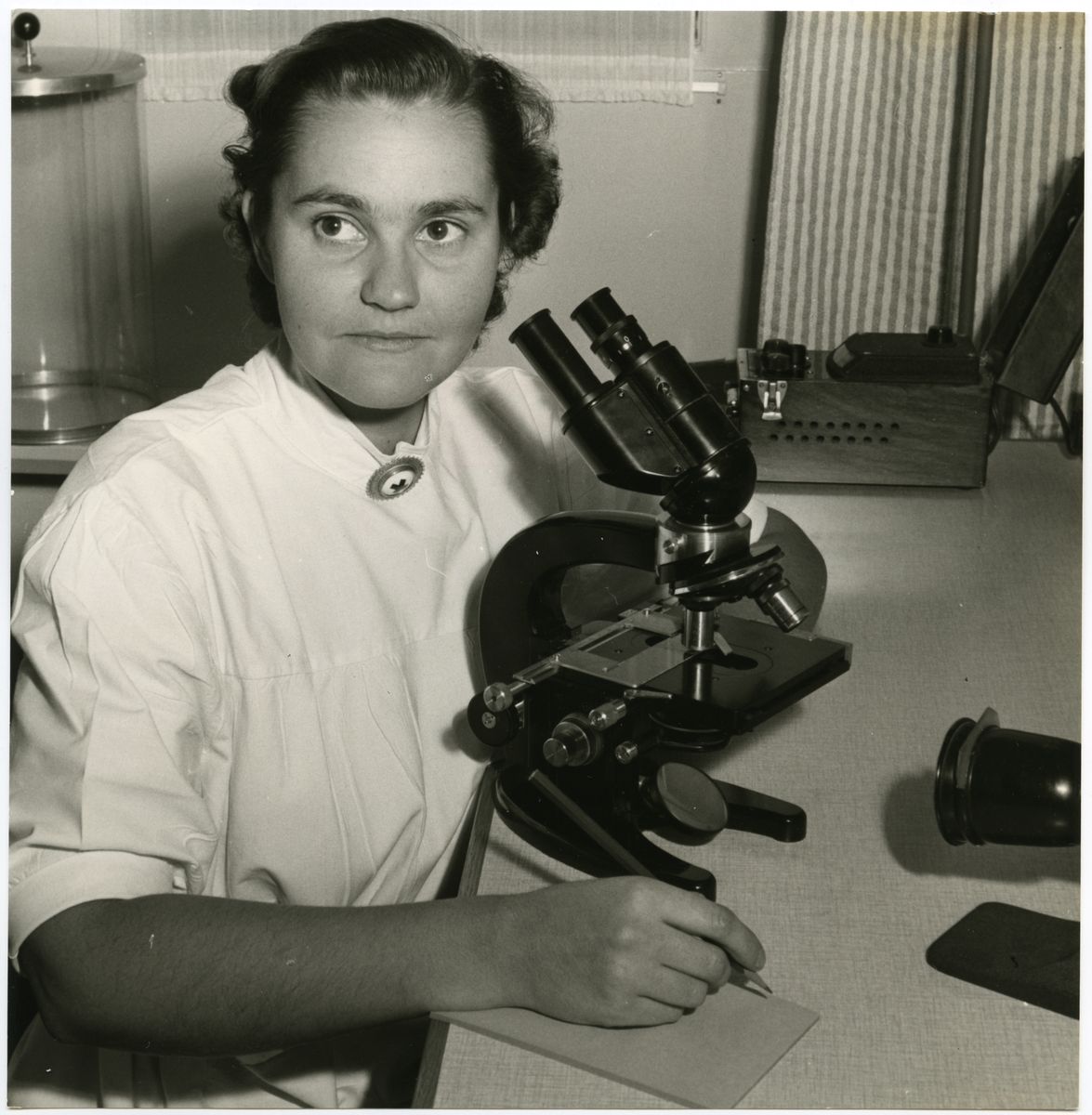 Läkarmottagningen SJ. Syster Birgit skriver rapport.