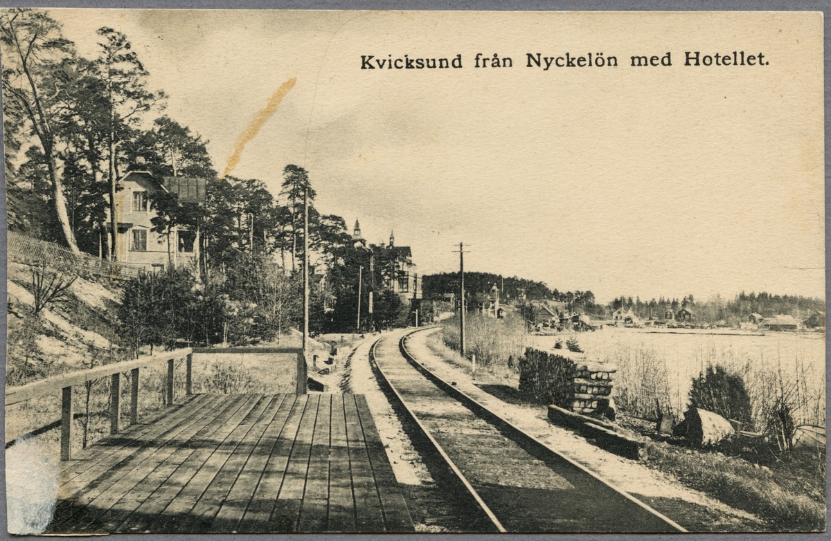 Bild på hotellet i Kvicksund taget från Nyckelön.