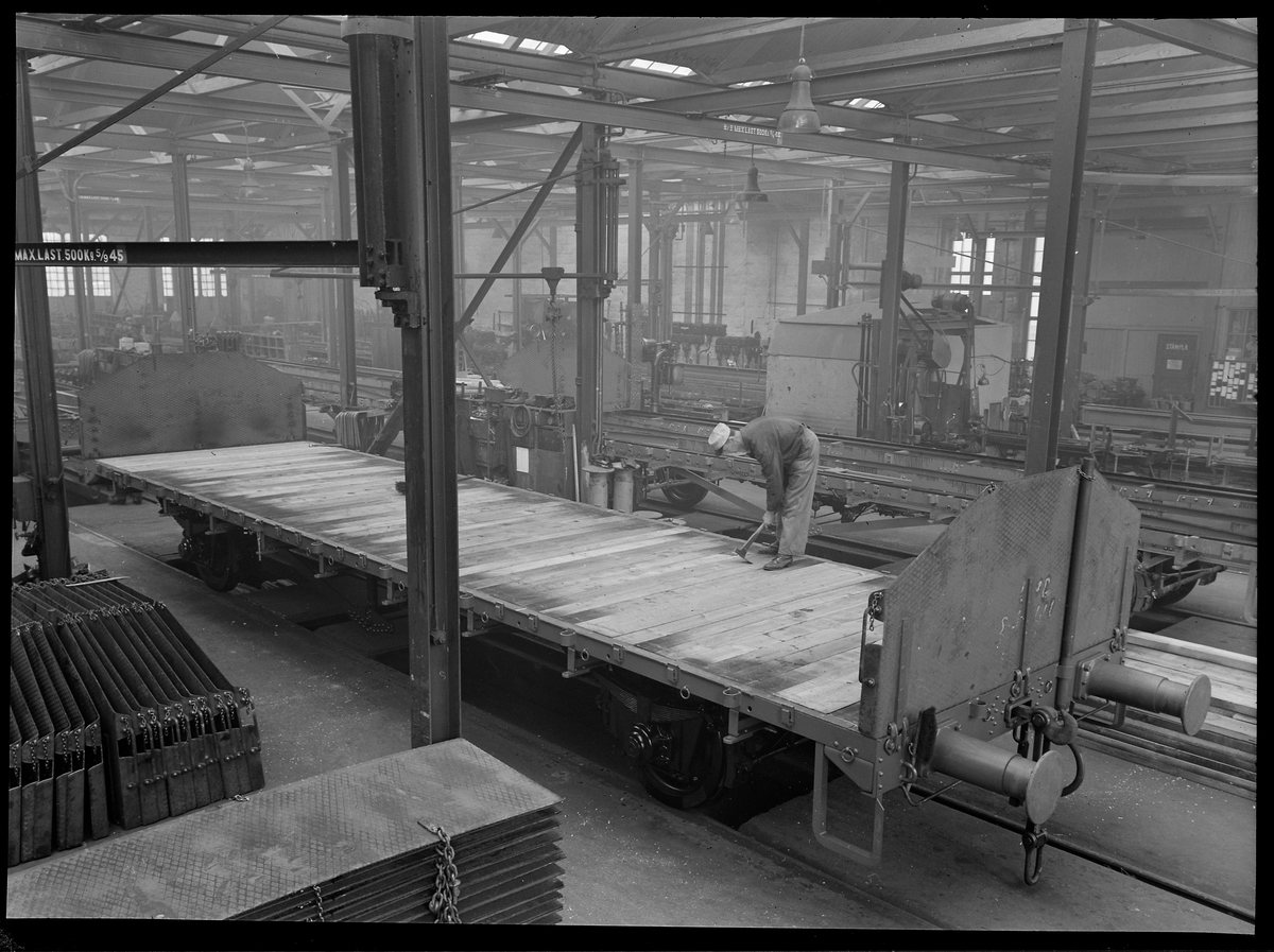 Verkstadsarbete på en godsvagn.