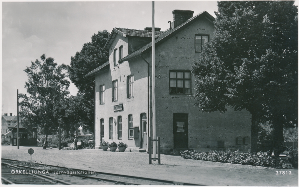 Örkelljunga station. Skåne-Smålands Järnväg, SSJ. Öppnad 1894. Övergick till Statens Järnvägar, SJ 1940. Persontrafiken nedlagd 1968.