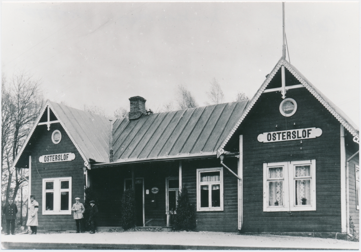 Österlövs station. Kristianstad-Immelns Järnväg, KIJ. Öppnad 1885. Övergick 1906 till Kristianstad-Hässleholms Järnväg,CHJ. Gick över till Statens Järnvägar, SJ 1944. Persontrafiken nedlagd 1969 och godstrafiken 1975. Banan uppriven 1992.