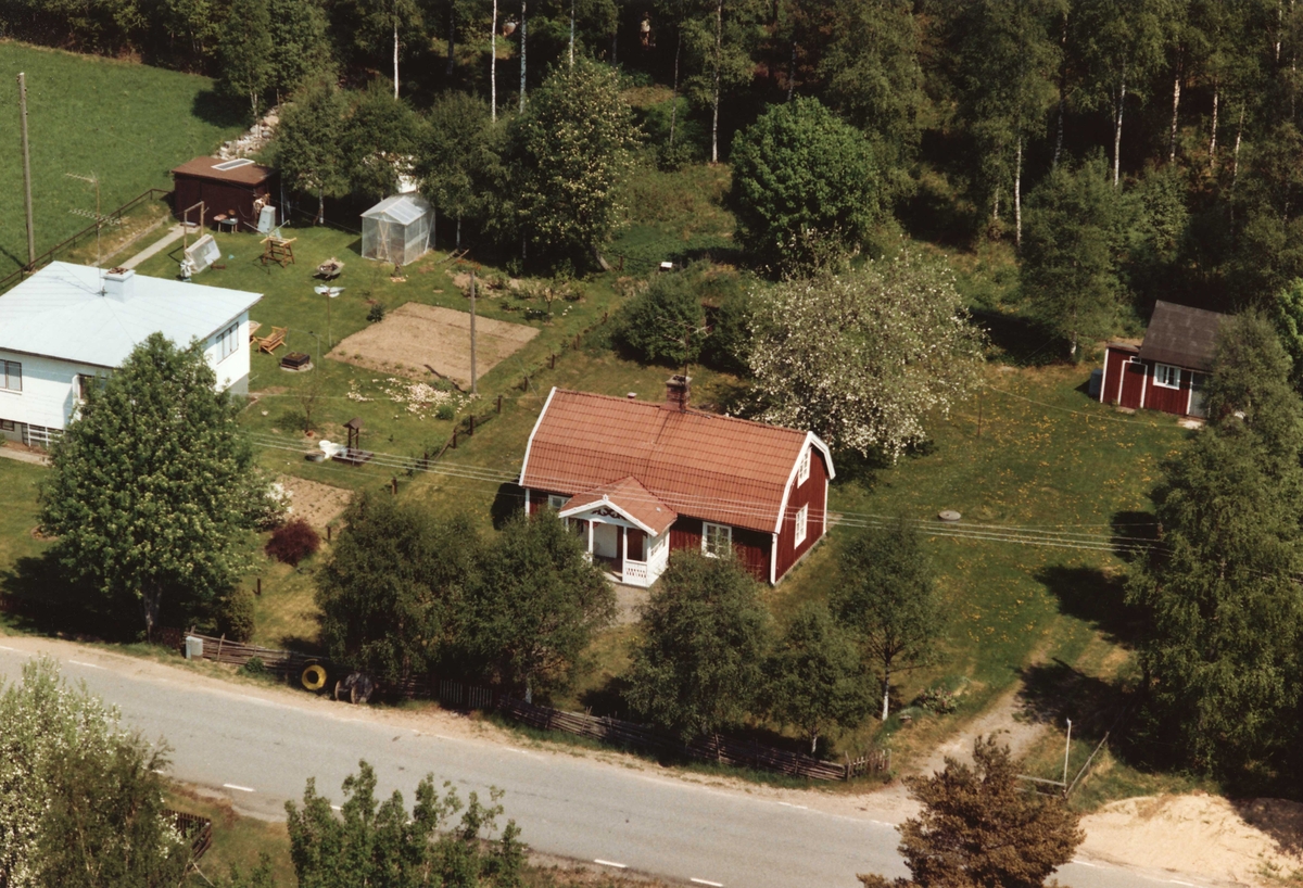 Flygfoto över fastigheten Björkhaga 1 utanför Myresjö, Vetlanda kommun.