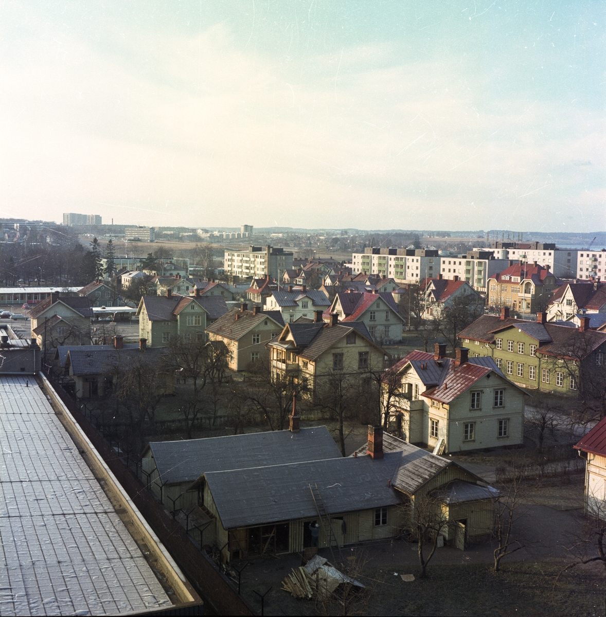 Vy över en del av bebyggelsen i Huskvarna. I bakgrunden syns Österängen.