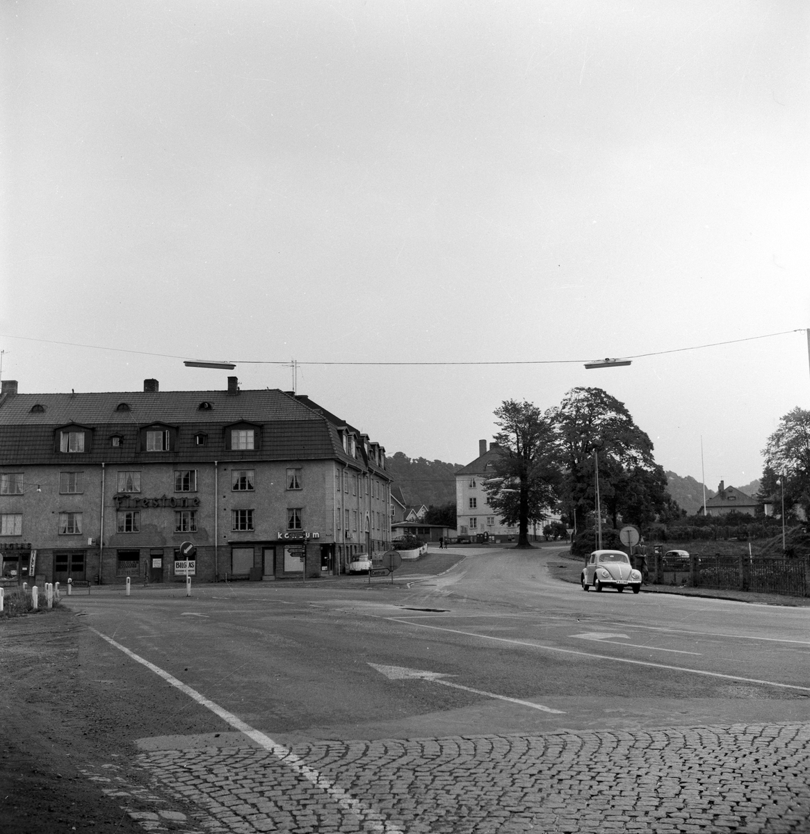 En fastighet utmed Grännavägen vid Kavlabron i Huskvarna. På hörnet ligger en Konsumaffär bredvid ett glasmästeri. Lägenheter finns i våningarna ovanför.