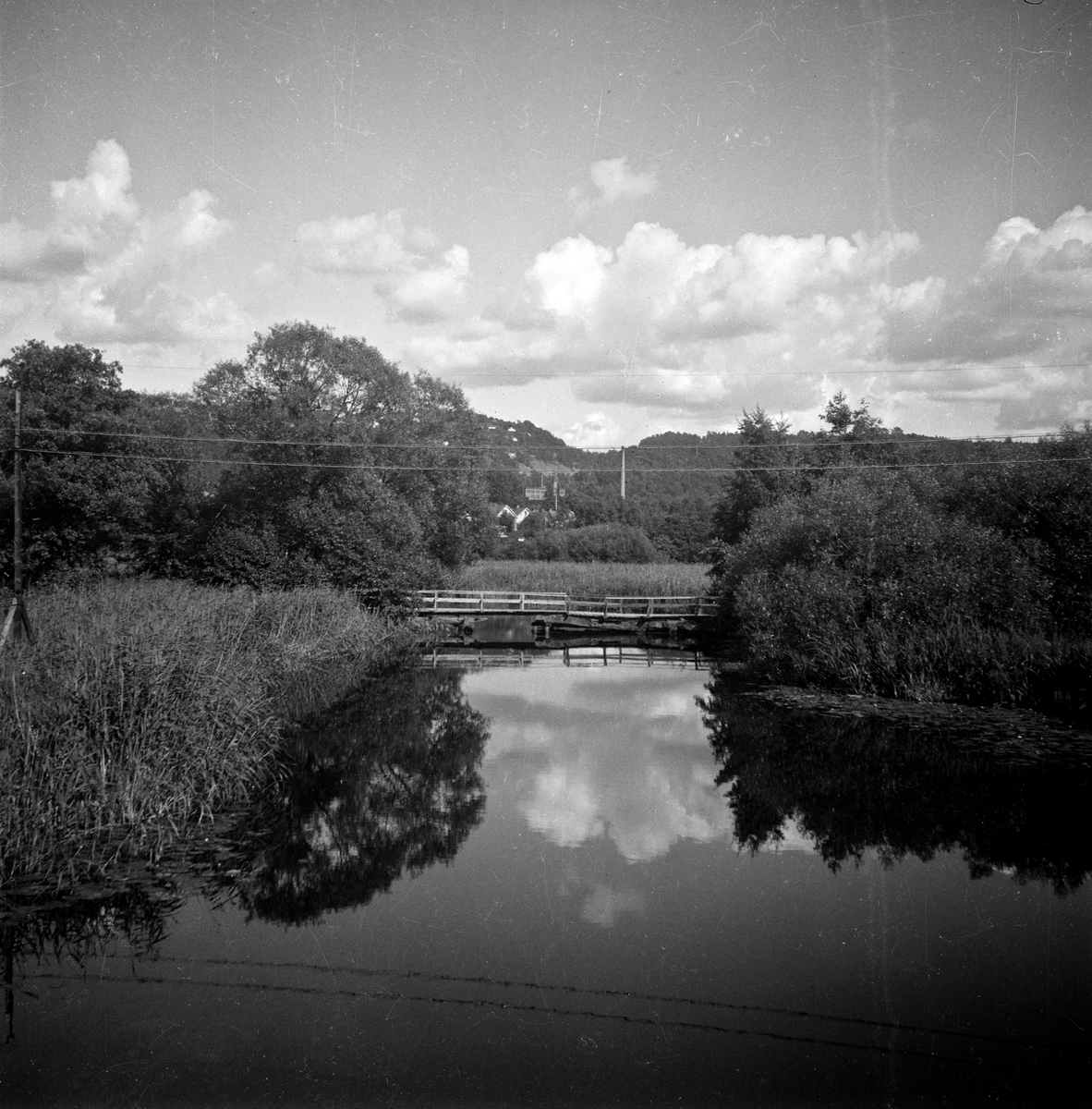 En gångbro av trä över Huskvarnaån.