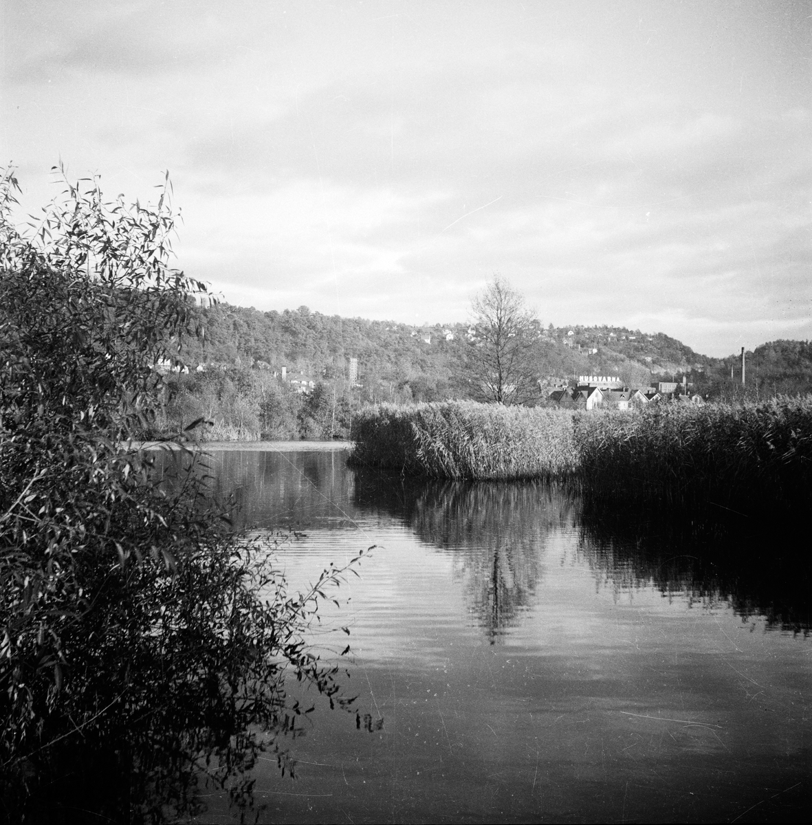 Huskvarnaån. I bakgrunden syns Husqvarna industri.